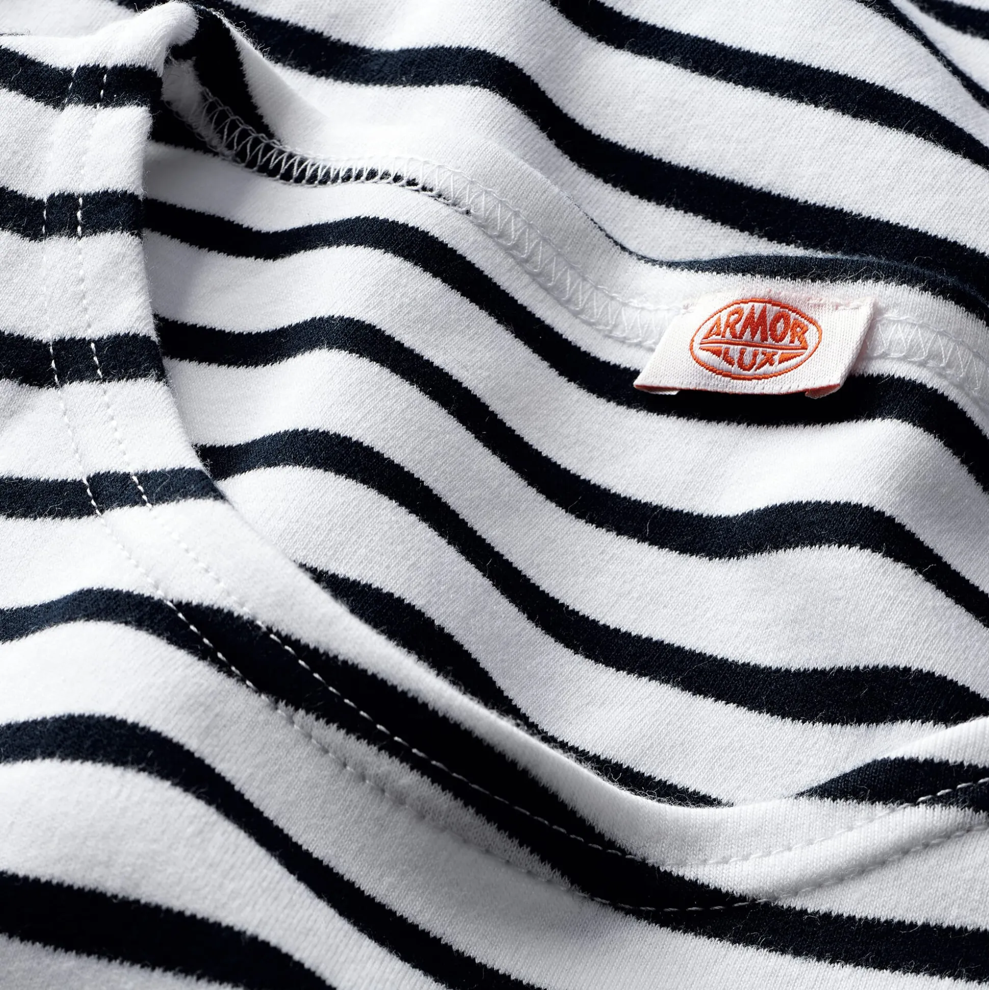 „Armor“ ist in der bretonischen Sprache das Wort für Meer, und mit „lux“ kann ja doch nur das Licht an der Küste gemeint sein. Maritimen Charakter haben jedenfalls bis heute viele der Kleidungsstücke, die Armor lux fertigt – Pullover und Shirts, Kleider, Hosen, Hüte, Mützen und Schals. Der Ende der 1930er Jahre von einem Schweizer in Quimper gegründete Betrieb kombiniert dabei schlichte, bequeme Schnitte, klassische Farben und eine kompromisslose Qualität in Sachen Material und Verarbeitung. Die Produktion erfolgt weitgehend am Stammsitz in Frankreich und zu einem kleinen Teil in eigenen Betrieben in Madagaskar und Tunesien.