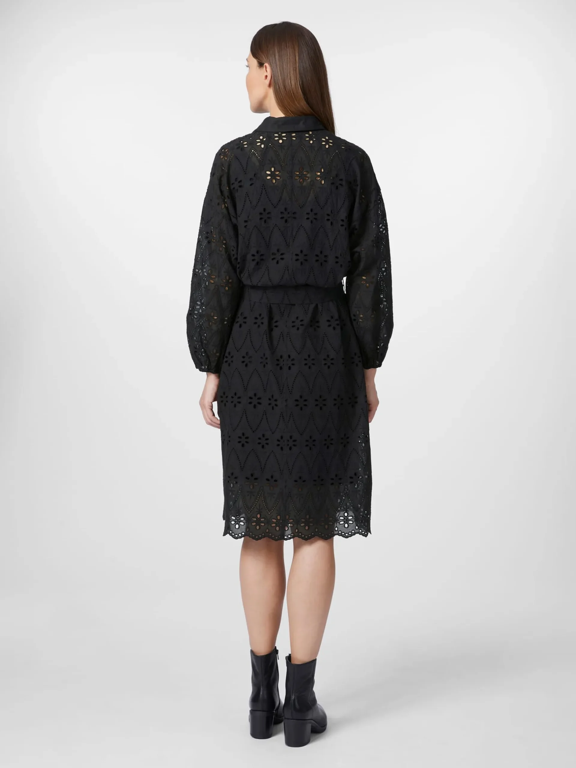 Dieses in leichter A-Linie geschnittene Spitzenkleid verleiht Ihrem Outfit eine klassische und zeitlose Eleganz. Lanius fertigt es aus reiner, kontrolliert biologisch angebauter Baumwolle. Gearbeitet ist es mit durchgehender Knopfleiste, klassischem Hemdkragen und langen, weiten Ärmeln mit Gummizug am Saum. Ein Bindeband aus Oberstoff erlaubt eine Weitenanpassung auf Taillenhöhe. Da das Kleid aufgrund seiner Machart recht transparent ist, kommt es mit einem farblich passenden Unterkleid, das ebenfalls aus hautsympathischer, kontrolliert biologisch angebauter Baumwolle besteht