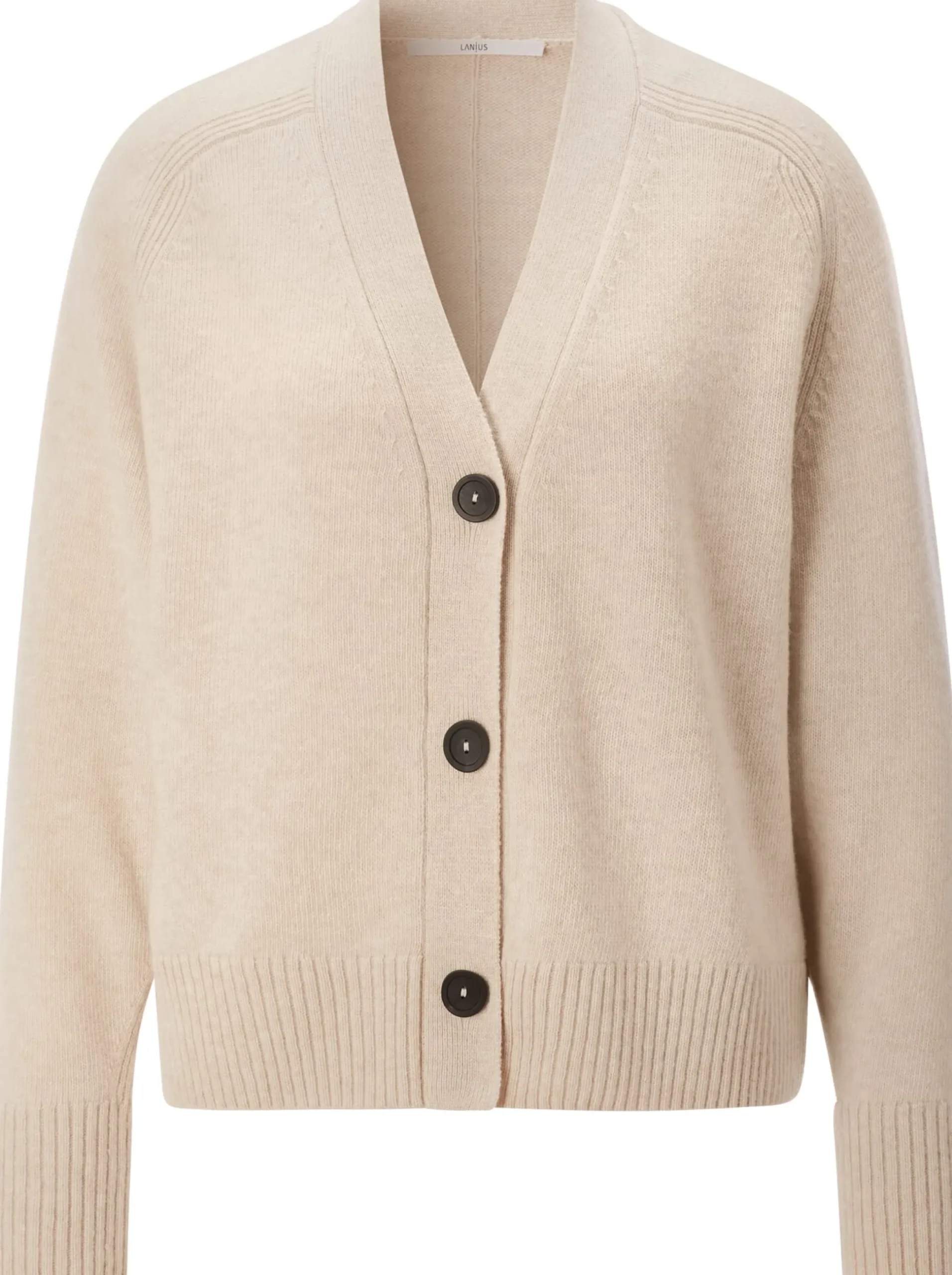Der zehnprozentige Kaschmiranteil macht das Gestrick dieser Strickjacke besonders schmiegsam. Die restlichen 90 Prozent sind Schurwolle aus kontrolliert biologischer Tierhaltung. Das Gestrick, das einen schönen Melangeton zeigt, ist ebenso wärmend wie temperaturausgleichend und atmungsaktiv. Dank dieser natürlichen Materialeigenschaften und der leger gehaltenen Passform ist die glattgestrickte Jacke so gemütlich, dass sie sicherlich zu einer Ihrer liebsten Begleiterinnen werden wird – in der Übergangszeit wie im Winter, an kühlen Frühlings- oder Sommertagen. Gearbeitet ist sie mit Raglanärmeln und breitem Rippenstrick an Ärmeln und Rumpf. Die nach außen verlegte Langsteilungsnaht im Rücken setzt einen markanten optischen Akzent. Große, farblich kontrastierende Hornknöpfe runden das Design ab.