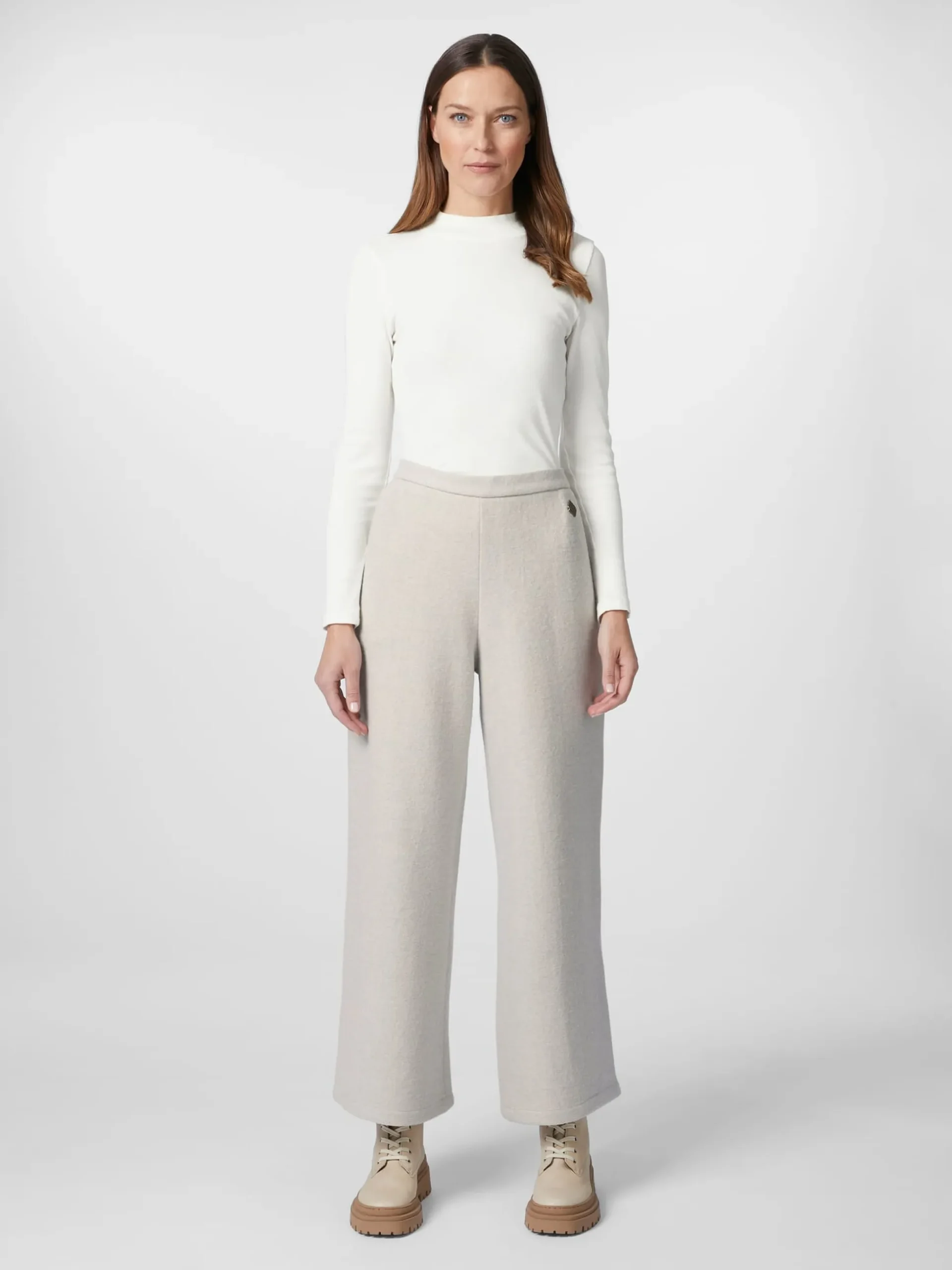 Herrlich gemütliche Strickpants – perfekt für Freizeit und mobiles Arbeiten. Das gewalkte Gestrick besteht je zur Hälfte aus extrafeiner Merinowolle und kontrolliert biologisch angebauter Baumwolle, was ihm besonders schmiegsame, wärmende und temperaturausgleichende Eigenschaften verleiht. Das weite, gerade Bein und der Teilgummibund sorgen für einen lässigen und bequemen Sitz. Zwei Eingrifftaschen nehmen Kleinteile des täglichen Bedarfs auf.