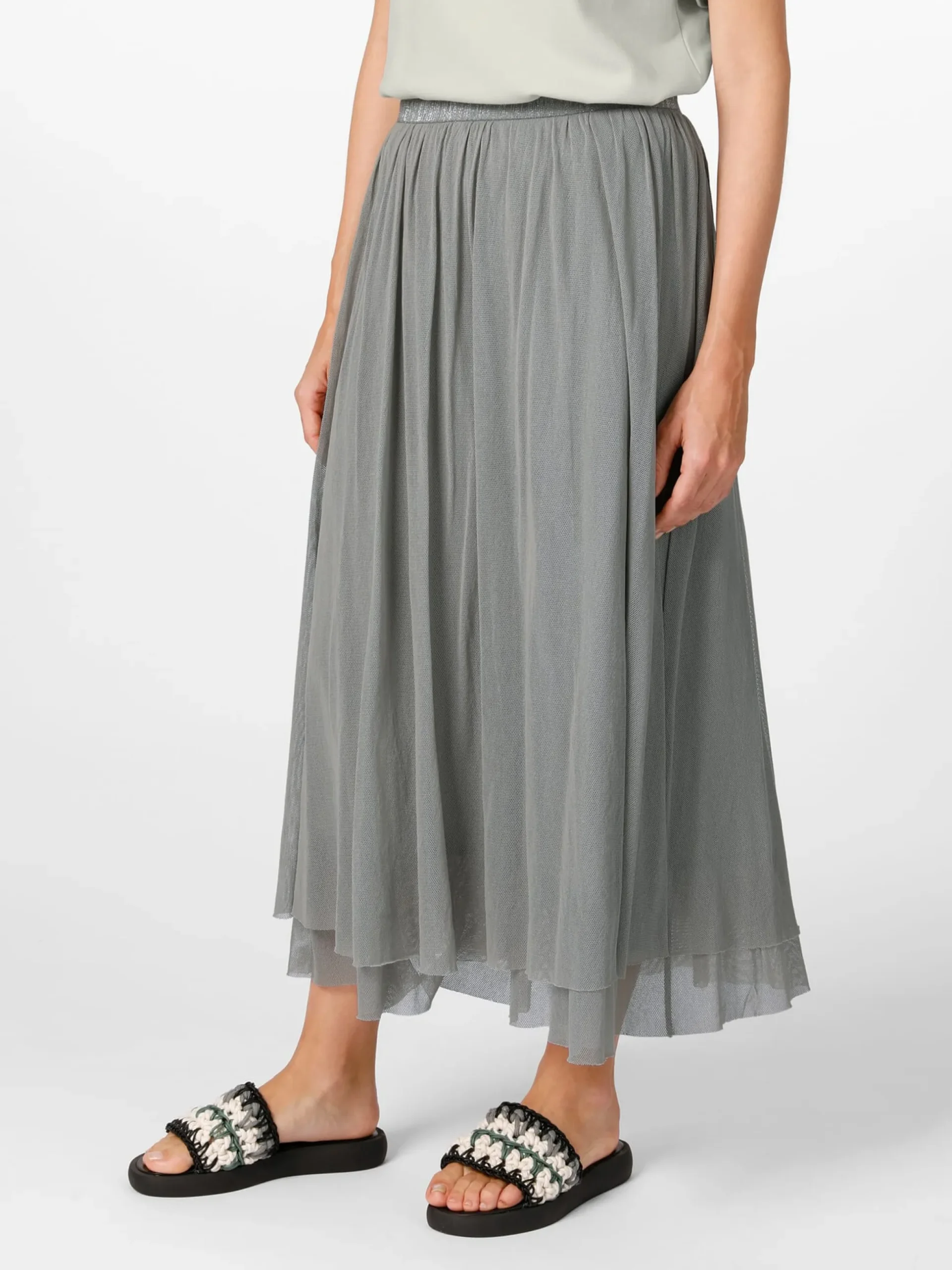 Sie sind zurück – die Tüllröcke! Dieser hier von Alma & Lovis ist allerdings eine Seltenheit, denn er besteht aus reiner kbA-Baumwolle und nicht aus Polyester wie die meisten seiner „Anverwandten“. Das macht ihn besonders weich und dehnbar. Ein Glitzer-Gummibund sorgt für noch mehr Bewegungsfreiheit. Der Rock hat zwei Lagen – die untere besteht aus glattem Bio-Baumwolljersey mit Tüllblende, die obere ist komplett aus Tüll gearbeitet und fällt im Stufenlook locker über die untere. Kombiniert mit Bluse oder T-Shirt, Blazer oder Lederjacke, Sandalen oder Sneakern – der Tüllrock lässt Spielraum für vielfältige Outfits, von elegant bis lässig.