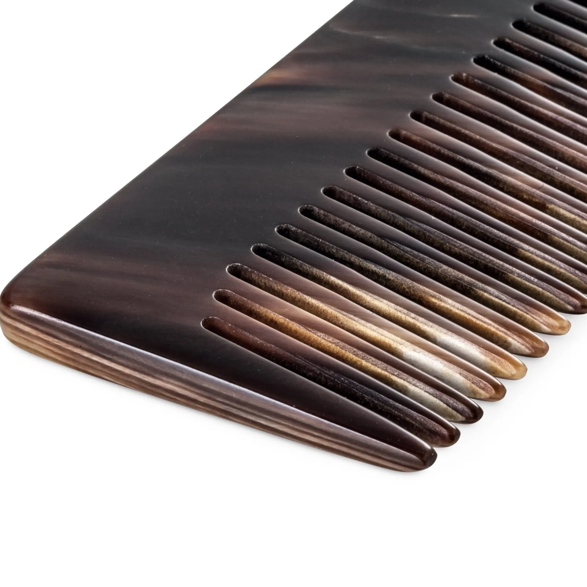 Unsere Auswahl an Kämmen – aus Horn, Holz und Ebonit – ist zudem an der jeweils höchsten Verarbeitungsqualität orientiert (nur so kann das Haar schonend gekämmt werden): Zähne und Zahnzwischenräume sind in jeweils materialgerechten Verfahren sorgfältig gesägt, abgerundet und poliert.