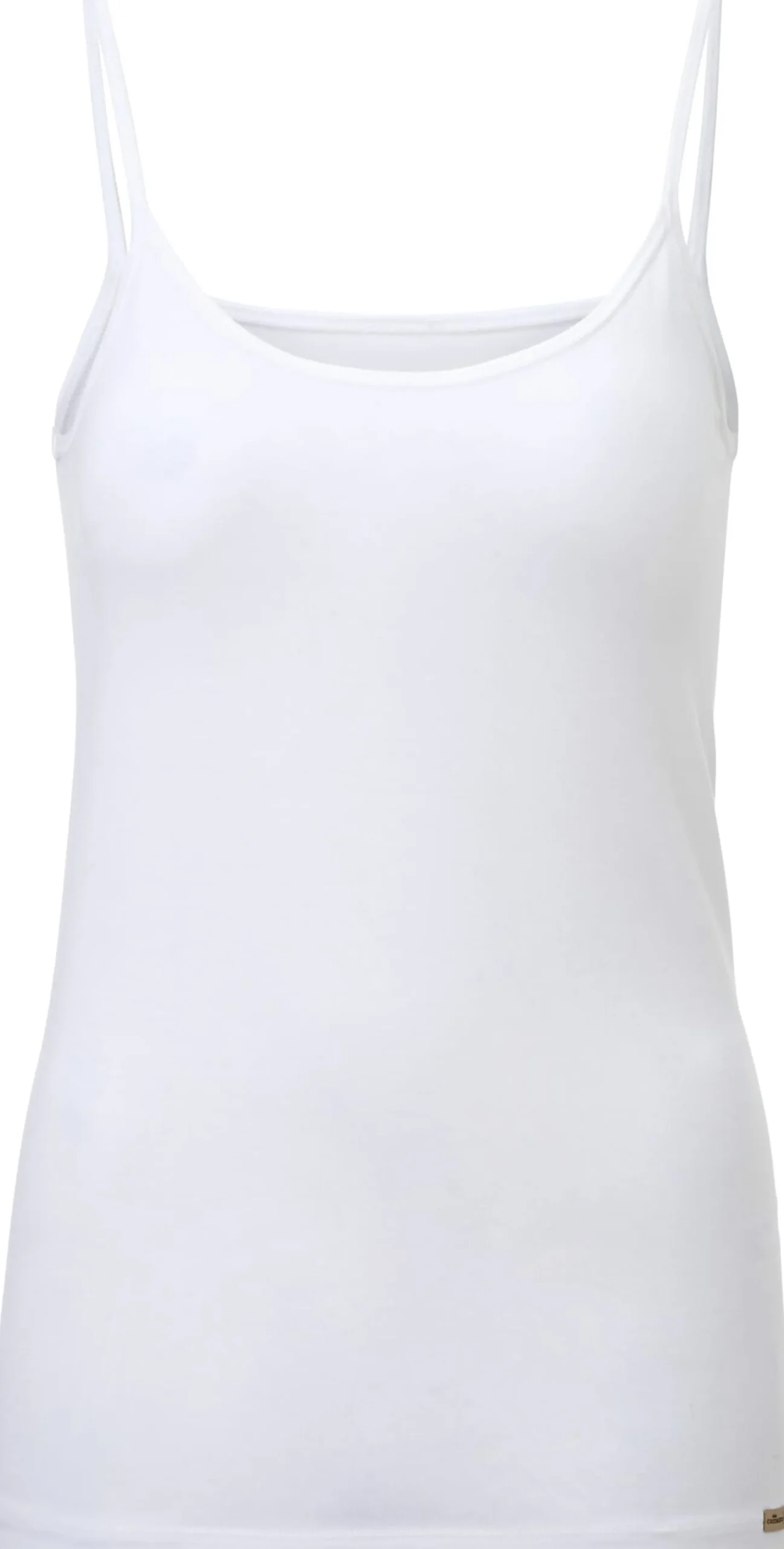 Dieses modisch geschnittene Unterhemd mit Spaghettiträgern zeichnet sich durch einen besonders weichen Griff aus. Der Jersey, aus dem es gemacht wird, ist aus Bio-Baumwolle. Durch etwas Elastan schmiegt es sich weich an und bleibt dauerhaft in Form. Da es zudem ohne Seitennähte gearbeitet ist, ist es selbst für empfindliche Menschen angenehm zu tragen. Der Halsausschnitt und die Armausschnitte sind eingefasst.