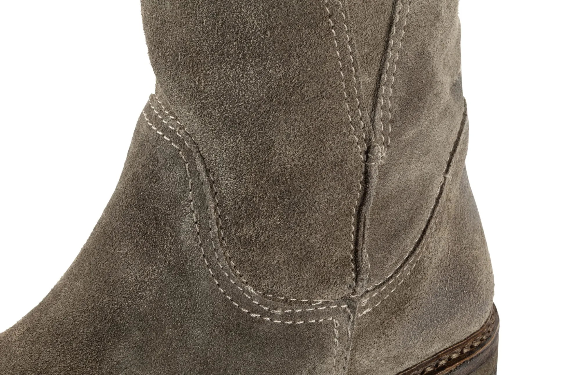 Durch und durch bequem ist dieser Boot aus dem Hause Astorflex. Und wie bei der italienischen Schuhmanufaktur üblich, kommt bei ihm vegetabil gegerbtes Leder zum Einsatz: Veloursleder aus toskanischen Meistergerbereien als Obermaterial, weiches, glattes Kalbleder bei Futter und Decksohle. Die Kreppsohle ist aus reinem Naturkautschuk, was für eine gute Trittdämpfung sorgt. Die eher weiche, ungefütterte Stulpe sorgt für einen lässigen Sitz. Sie ist mit seitlichen, dreieckigen Einsätzen versehen, die ein schnelles An- und Ausziehen ermöglichen. Ein charakteristisches Merkmal bei Astorflex ist die sogenannte „Idealnaht“ entlang des Sohlenrandes, die dem Schuh Flexibilität und Haltbarkeit verleiht.