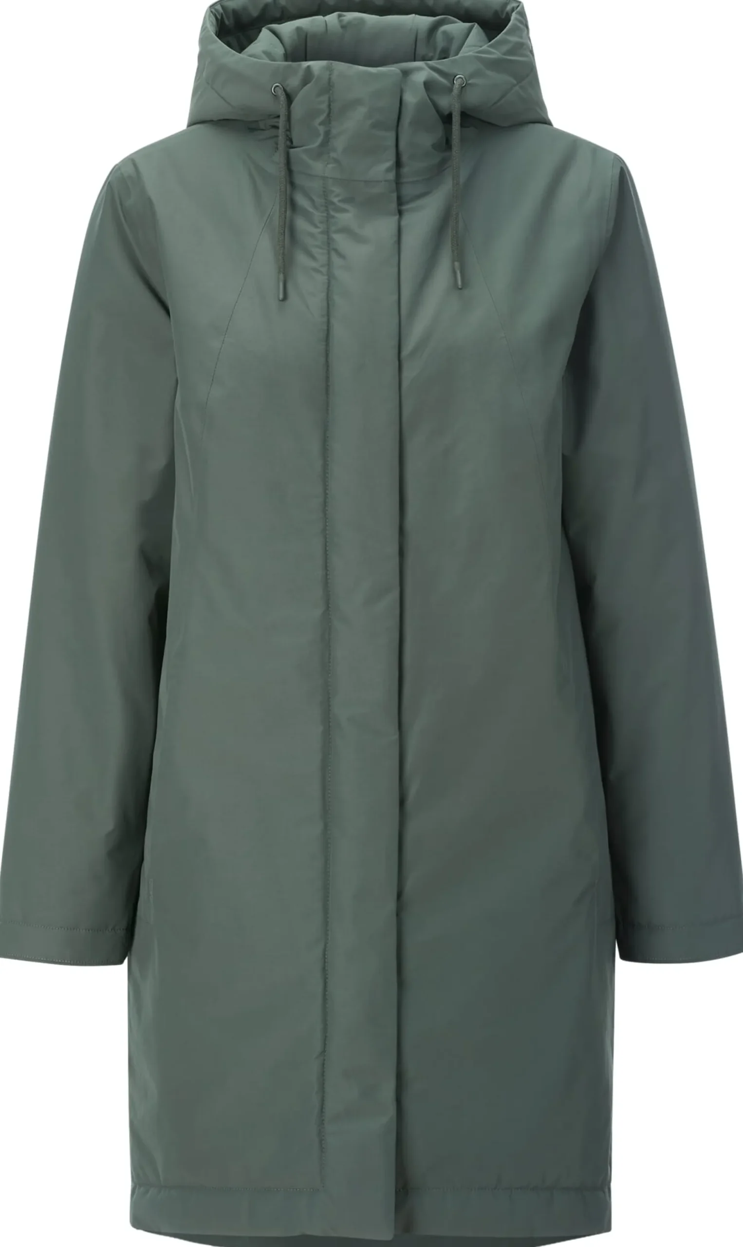 Dieser wetterfeste und wärmende Parka punktet durch seine schlicht gestaltete Optik, seine bequeme Passform und seine durchdachte Funktionalität. Das Obermaterial besteht aus kbA-Baumwolle und recyceltem Polyamid und ist mit einer innenliegenden, PFC-freien Polyurethan-Membran ausgestattet, wodurch der Parka atmungsaktiv sowie wind- und wasserdicht ist. Versiegelte Nähte halten Nässe zuverlässig ab. Die wärmende Wattierung besteht vollständig aus recyceltem Polyester und sorgt zusammen mit dem weichen Jersey-Innenfutter aus reinem Lyocell (TENCEL™) und den Belüftungsösen unter den Achseln für einen hohen Tragekomfort. Der Zweiwegereißverschluss lässt sich hoch bis zum Kinn schließen, über ihm liegt eine windabweisende Blende mit Druckknöpfen. Die geräumige, wattierte Kapuze lässt sich mittels Tunnelzug in der Weite anpassen und bietet so einen zusätzlichen Schutz vor Wind und Wetter. Konisch verlaufende Teilungsnähte vorn geben dem Parka einen guten Sitz und die zwei in die Teilungsnaht eingesetzten Eingrifftaschen sowie zwei Innentaschen nehmen Kleinteile des täglichen Bedarfs auf.