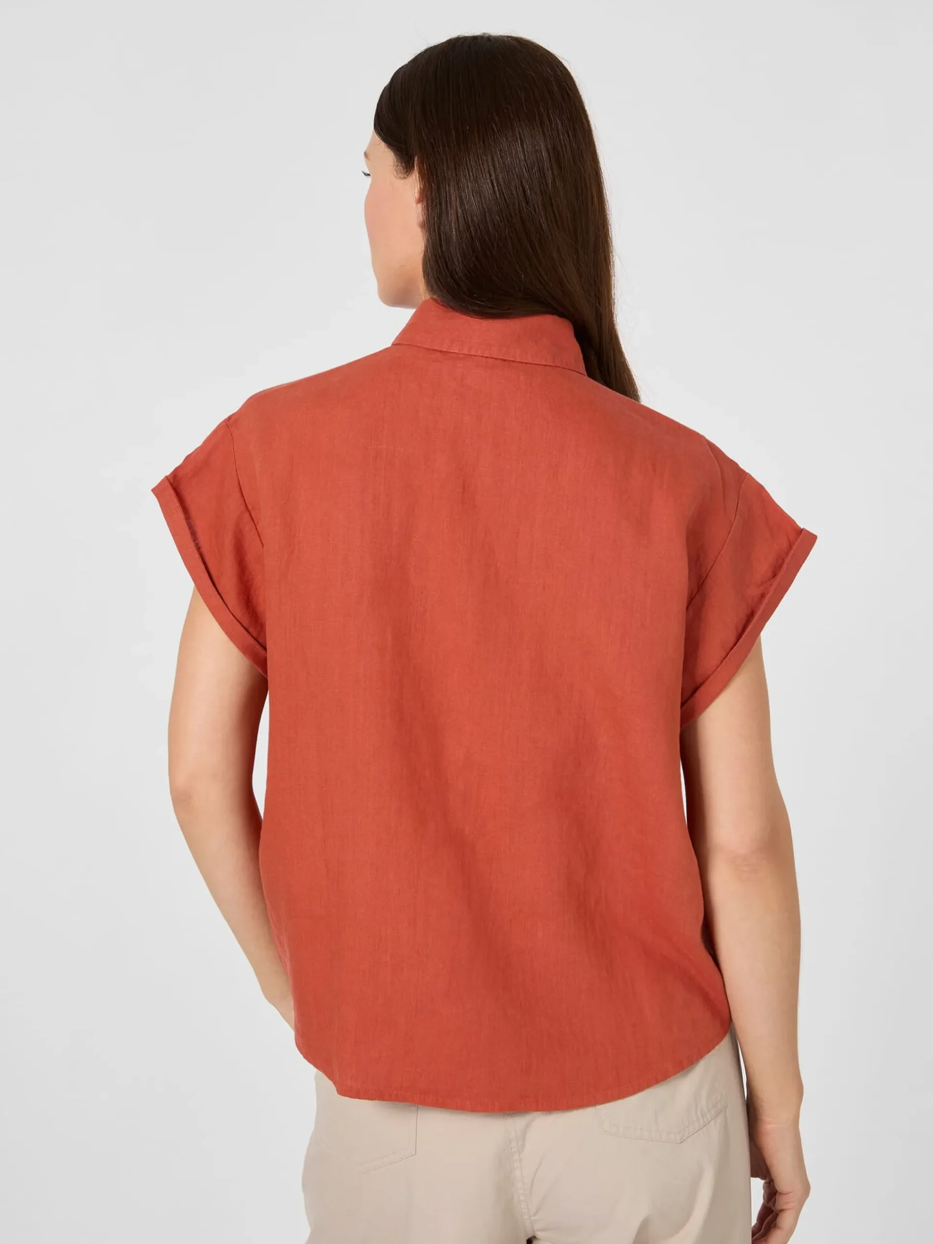 100% Leinen. Kunststoffknöpfe. Hergestellt in Indien. Rückenlänge bei Größe M = 61 cm.