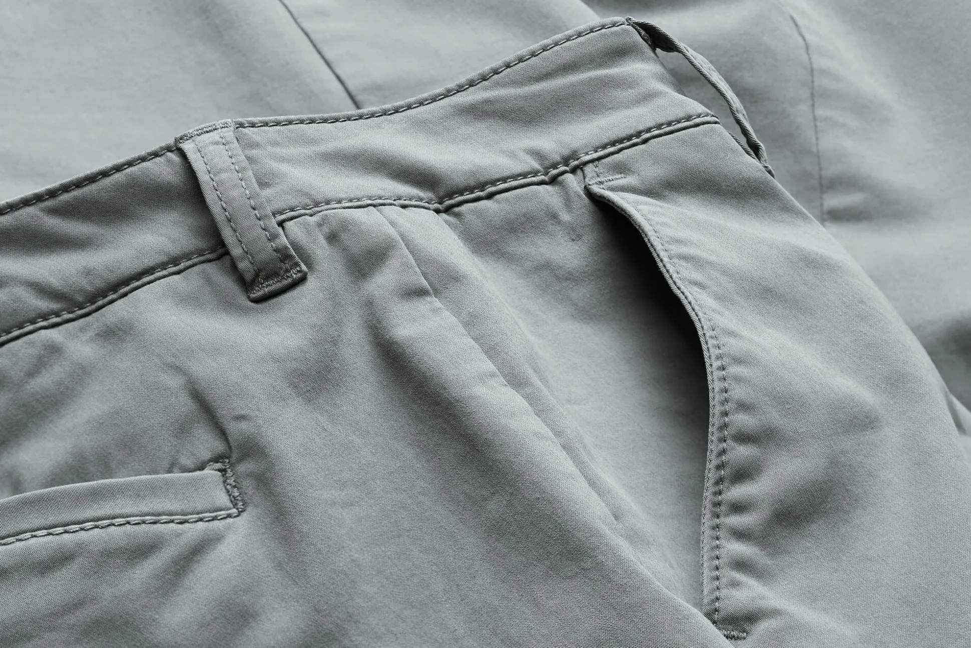 - Sportlicher Charakter: Gürtelschlaufen, Seiten- und Gesäßtaschen