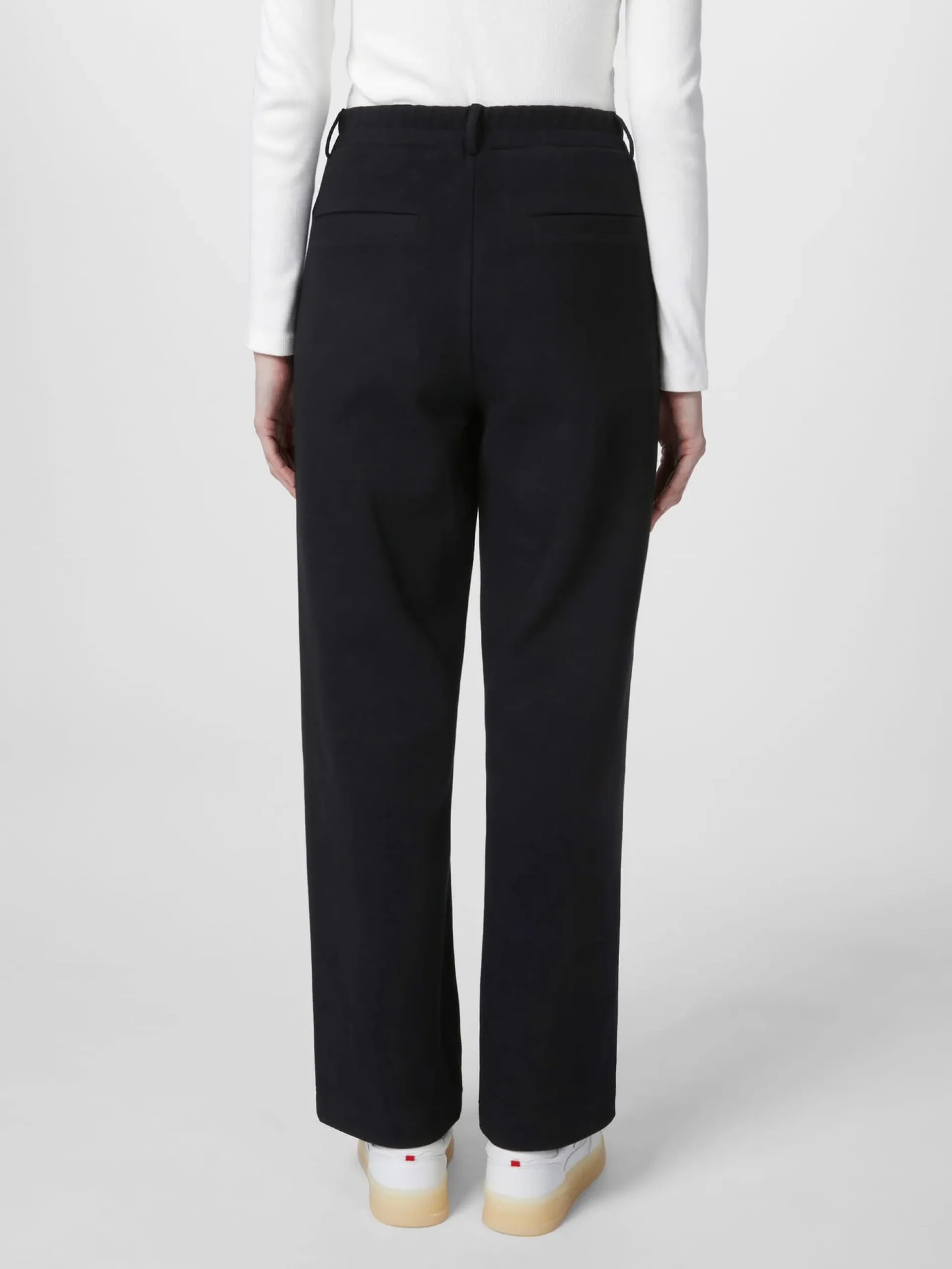 Diese Hose mit geradem, weitem Bein ist aus Heavy Jersey gefertigt – einem besonders schweren Interlock-Jersey, der fester, griffiger, feinmaschiger und damit strapazierbarer als normaler Jersey ist. Zudem weist er eine hohe Formbeständigkeit auf. Der Stoff wird aus unterschiedlichen Materialien gewirkt. Alma & Lovis verwendet hier hautsympathische, kontrolliert biologisch angebaute Baumwolle und einen geringen Anteil Elastan zugunsten von Elastizität und Tragekomfort. Die verschlusslose Hose ist mit Gürtelschlaufen, Teilgummibund, angedeutetem Hosenschlitz und blinden Gesäßtaschen gearbeitet. Zwei Seitentaschen bieten Platz für Kleinteile des täglichen Gebrauchs. Längsteilungsnähte vorn verschlanken die Silhouette optisch. Alles in allem: eine durch und durch bequeme Hose, die sich vielseitig kombinieren lässt – ob zu eleganten oder legeren Outfits.