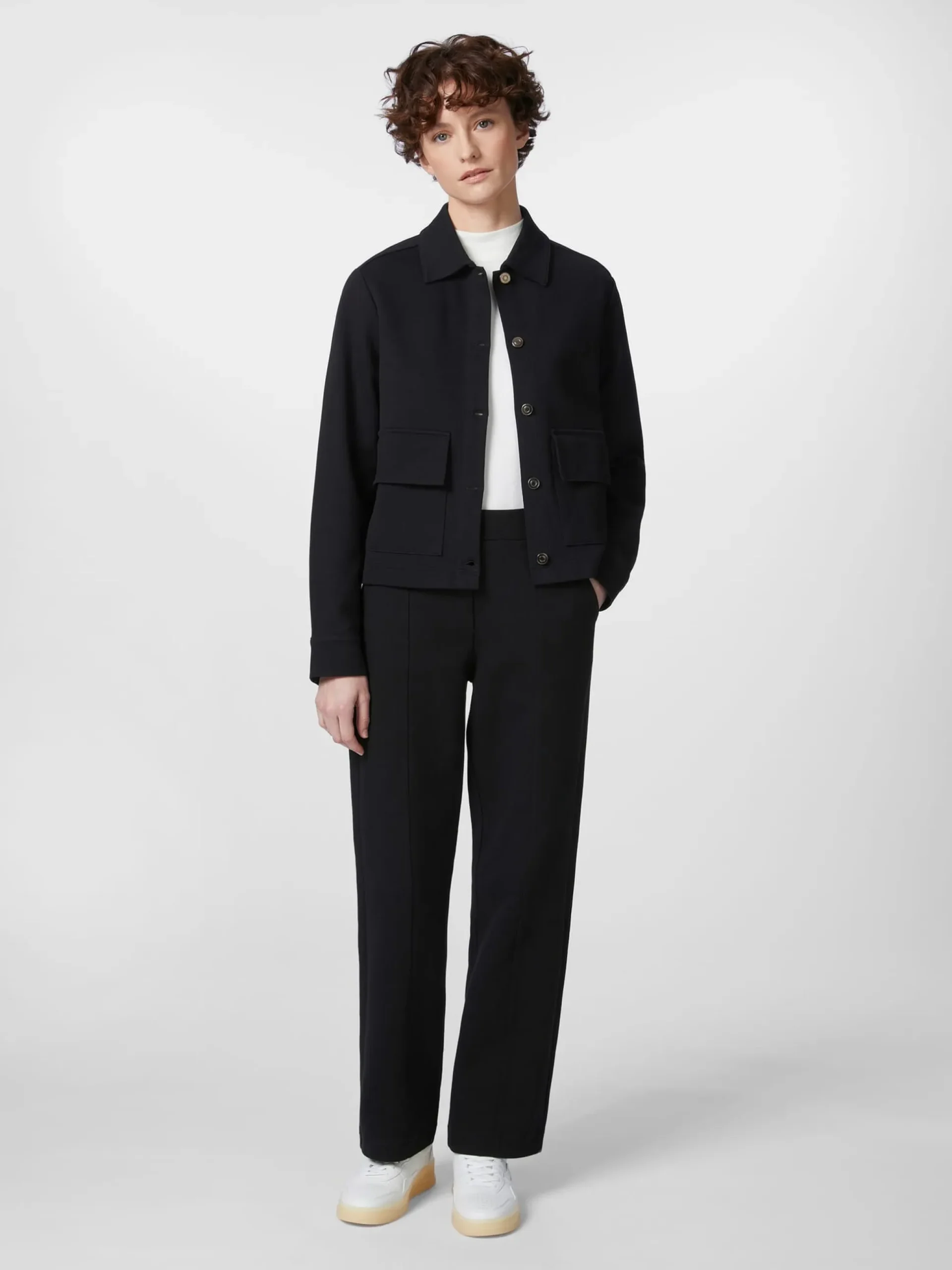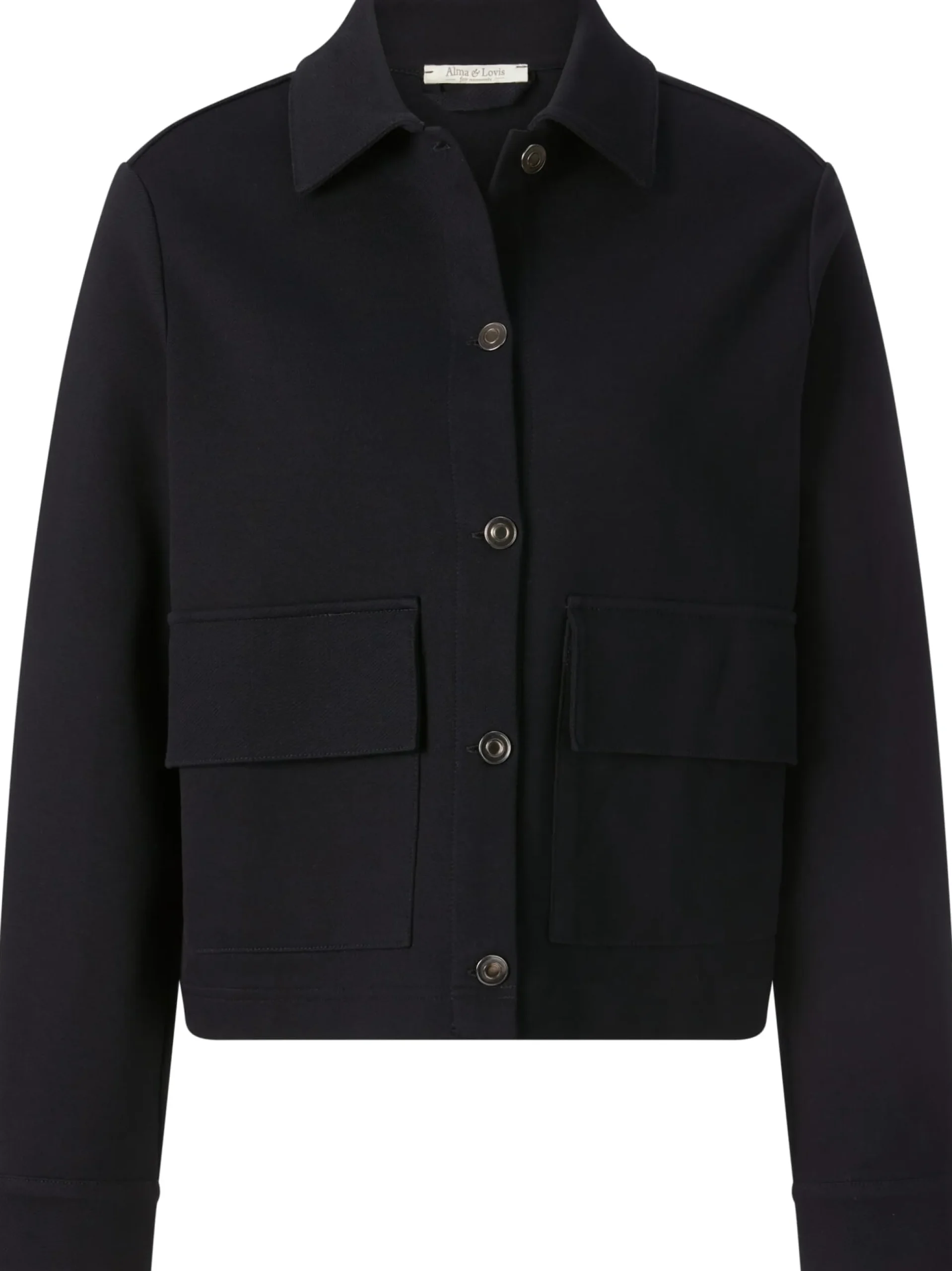 Diese sportlich geschnittene Jacke ist aus Heavy Jersey gefertigt – einem besonders schweren Interlock-Jersey, der fester, griffiger und feinmaschiger und damit strapazierbarer als normaler Jersey ist. Zudem weist er eine hohe Formbeständigkeit auf. Der Stoff wird aus unterschiedlichen Materialien gewirkt. Alma & Lovis verwendet hier hautsympathische, kontrolliert biologisch angebaute Baumwolle und einen geringen Anteil Elastan zugunsten von Elastizität und Tragekomfort. Ausgestattet ist die ungefütterte Jacke mit Hemdkragen und zwei aufgesetzten Pattentaschen. Zwei gelegte Falten unter der Schulterpasse sorgen für einen guten Sitz und noch mehr Bewegungsfreiheit.