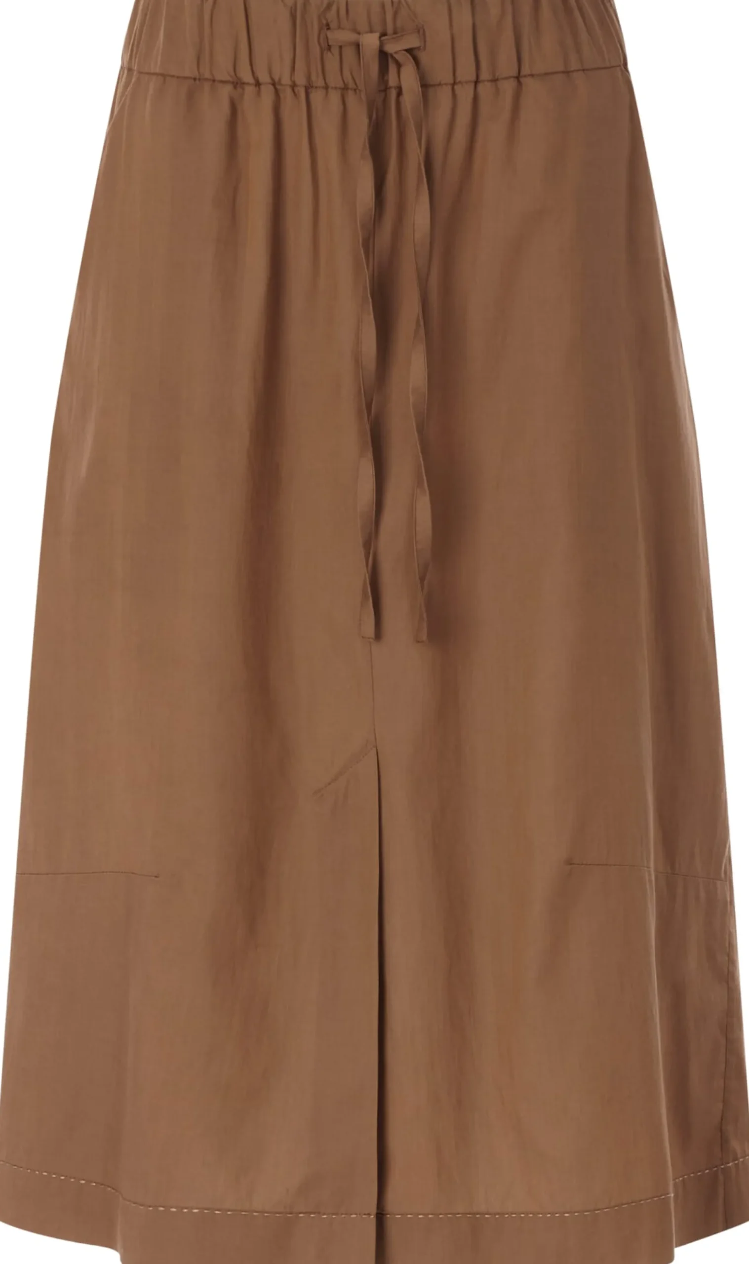 Lyocell (TENCEL™) und Baumwolle vereinen sich bei diesem überknielangen Rock zu einem leichten, weich auf der Haut liegendem und dennoch strapazierbarem Gewebe. Es zeigt einen zarten Glanz, ist atmungsaktiv und verleiht dem Rock einen fließenden Fall. Die lockere Passform in leichter A-Line erhöht den Tragekomfort, wozu auch der elastische Bund mit Bindeband beiträgt. Für noch mehr Bewegungsfreiheit ist der Rock vorn mit einem langen Gehschlitz gearbeitet. Zwei Seitentaschen nehmen Kleinteile des täglichen Bedarfs auf. Die große aufgesetzte Gesäßtasche schenkt dem eleganten Rock eine Spur Lässigkeit.