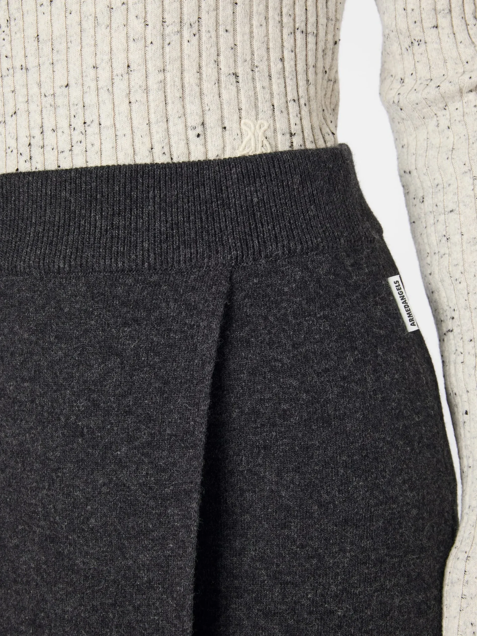 Ein Lieblingsstück für die Übergangszeit – komfortabel in Passform und Material. Armedangels verwendet hier eine Kombination aus hautsympathischer, kontrolliert biologisch angebauter Baumwolle und wärmender Wolle aus kontrolliert biologischer Tierhaltung, das verleiht dem Rock hautsympathische, wärmende und atmungsaktive Eigenschaften. Hinzu kommt noch ein geringer Anteil Polyamid zugunsten der Tragefreundlichkeit und Formtreue. Weil das Gestrick dehnbar und der Rippenstrickbund elastisch ist, wird der Tragekomfort noch erhöht. Eine besonders raffinierte Optik erhält der verschlusslose Rock durch die überlappende Stoffbahn vorn, die an einen Wickelrock erinnert. Ob im Büro, auf der Party oder bei einem Stadtbummel mit Freund*innen, dieser Rock macht stets eine gute Figur. Und da er oberhalb des Knies endet, wird die Silhouette optisch gestreckt.