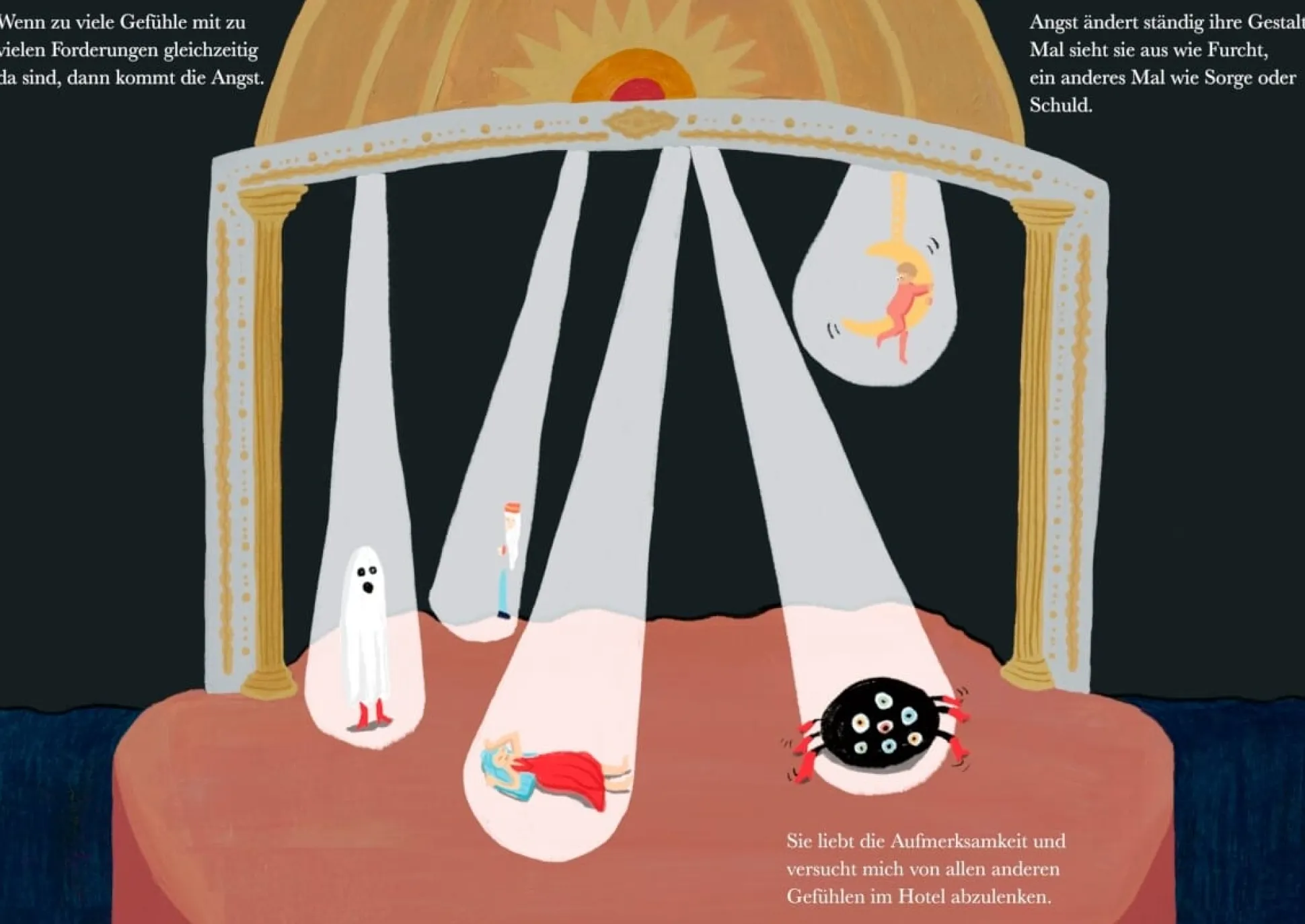 Willkommen im Gefühle-Hotel! Hier zeigen alle ihre Stimmungen und Bedürfnisse!Jeder Tag ist in diesem besonderen Gasthaus anders: Denn hier übernachten Gefühle. Nie weiß die Hotelbesitzerin, welche Emotion einchecken wird. Außerdem möchten ihre Gäste ganz individuell behandelt werden. Wut zum Beispiel ist sehr laut und braucht viel Platz, um sich Luft zu machen. Ihr ein zu kleines, abgelegenes Zimmer zu geben, ist keine gute Idee. Traurigkeit dagegen spricht mit leiser Stimme und überschwemmt gelegentlich das Badezimmer. Dankbarkeit streift gerne draußen umher und man weiß nie, wann sie kommt. Und wenn die Liebe einzieht, verwandelt sich das Hotel in einen magischen Ort, erfüllt von Licht und Lachen. Mit Lidia Brankovićs Bilderbuch lernen Kinder ab Kindergarten- und Grundschulalter den Umgang mit Gefühlen kennen und können so ihre emotionale