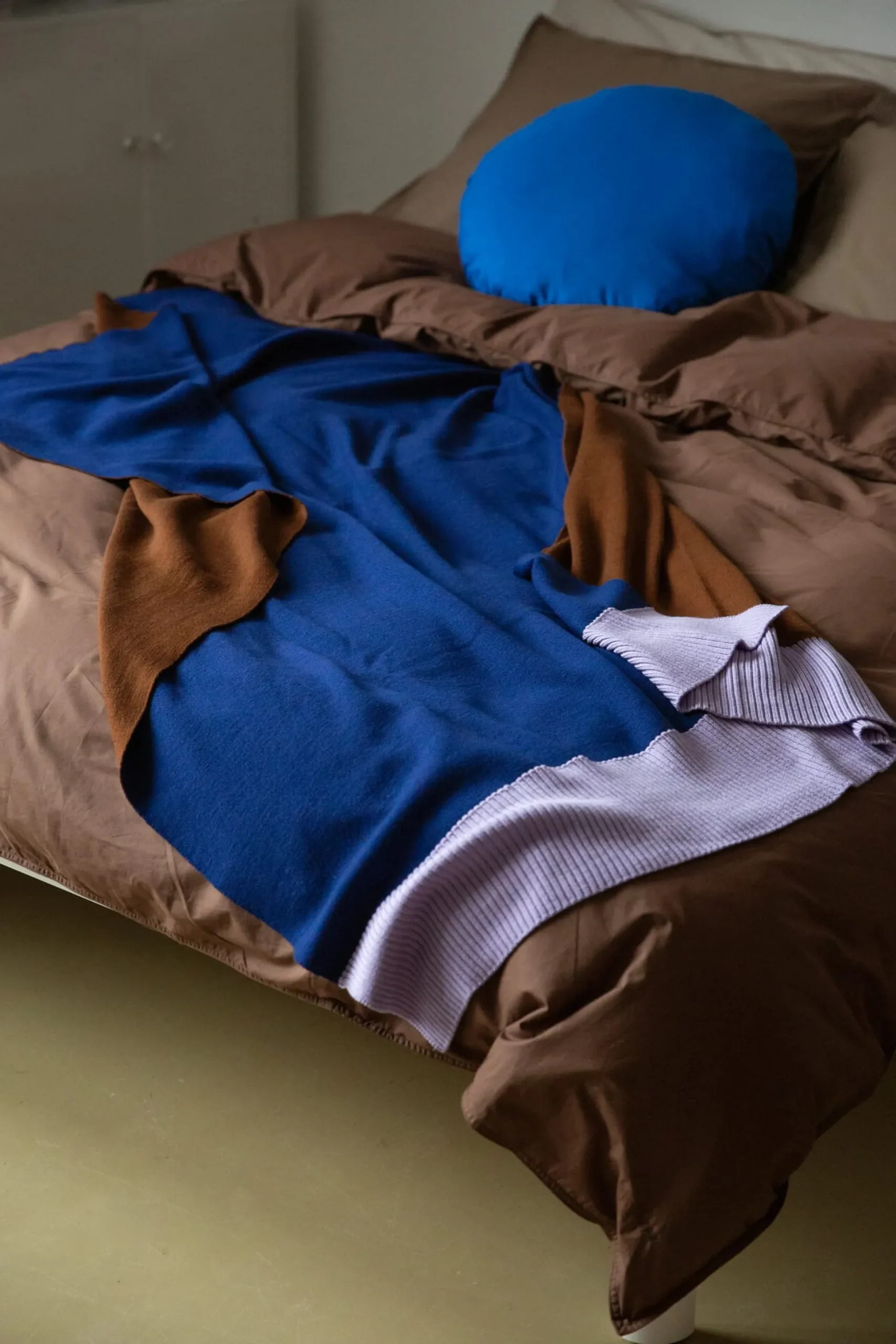 Doppelseitig gestrickte Decke aus 100% Merinowolle in kräftigen Blockfarben – auffällig mit ihren unterschiedlichen Farben auf beiden Seiten, die gekonnt aufeinander abgestimmt sind. Schönes Detail: Das breite Rippbündchen in kontrastierender Farbe ist beiden Seiten gemein. Ideal für einen entspannten Abend zu Hause oder als farbstarkes Detail am Fußende des Bettes.