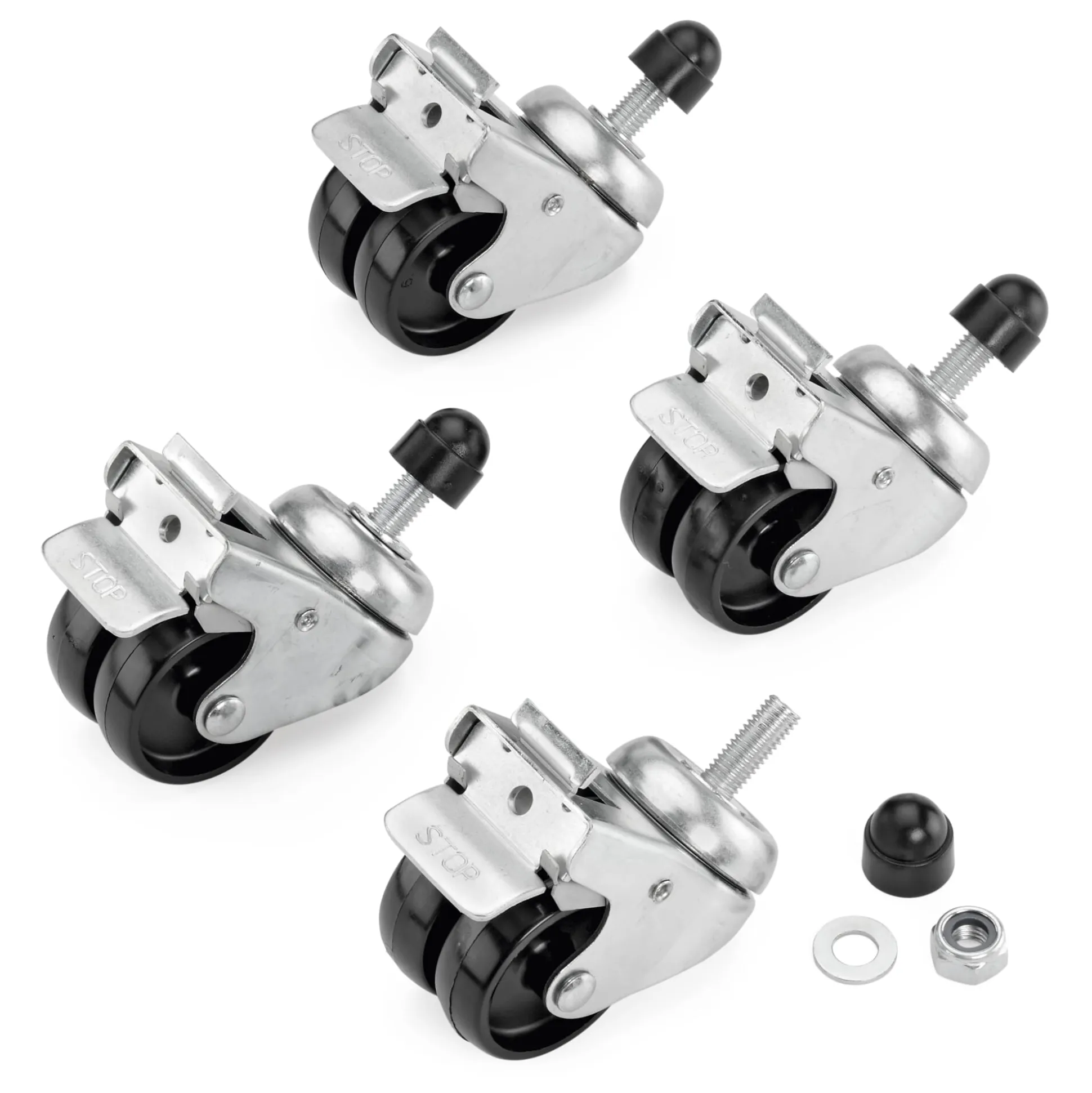 Zur Nachrüstung des Sonnenschirmfußes. Set von 4 Doppelrollen mit Feststeller.