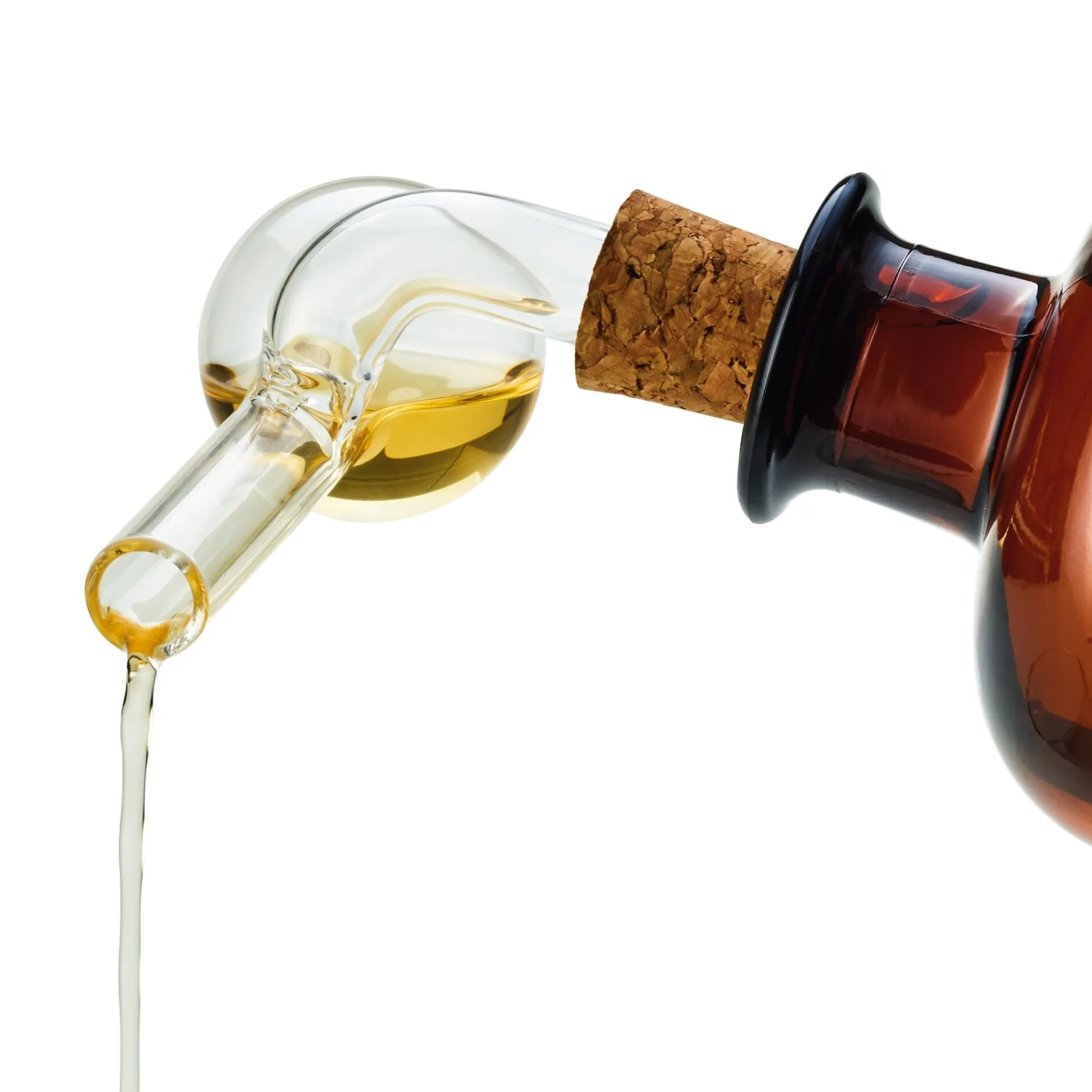 Ein Dosierer und Flaschenaufsatz aus mundgeblasenem Glas, der mit einem Naturkorken verschlossen werden kann. Dr. Jaglas, Hersteller von aromenreichen Digestifs nach Klosterapotheken-Rezeptur, lässt ihn eigens für sich anfertigen – denn ein guter Kräuterbitter will schließlich auch wohlabgemessen eingeschenkt werden. So fasst die kleine Kugel exakt zwei Zentiliter.