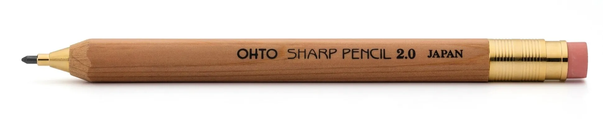 Von Ohto in Tokio, einem der führenden Hersteller von Feinminenstiften, kommt dieser kleine Druckbleistift mit 2-mm-Mine und rückseitigem Radierer. Anders als die europäischen metallenen Kollegen ist der Korpus aus Zedernholz gemacht, sodass der Druckbleistift zum einen leichter ist und zum anderen haptisch an die gängigen Bleistifte erinnert. Mit 13,5 cm Länge eignet er sich zudem für die Stiftschlaufe kleinerer Kalender oder Notizbücher.