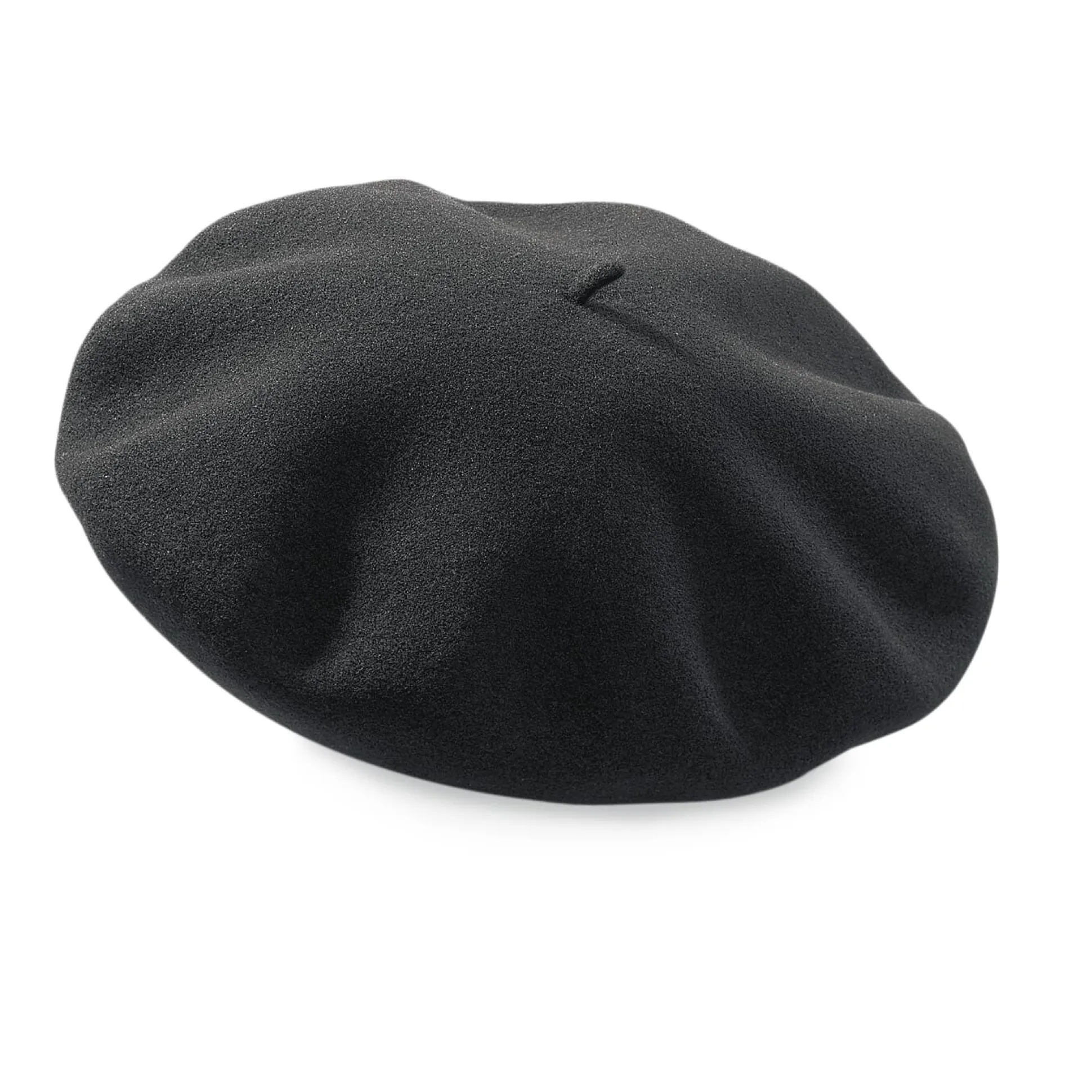 Bei Künstlern und Intellektuellen besonders beliebt und so in den Ruf gekommen, dass ein von ihr bedeckter Kopf selten völlig hohl sei – dies hier ist eine echte. Seit 1928 wird diese „Baske“ in einem Betrieb am Fuß der Pyrenäen gemacht. Feinste Wollkämmlinge werden auf einer Rundstrickmaschine zur Rohbaske, der „Labrazze“, verarbeitet; die in der Mitte überstehenden Enden der Kettelfäden bilden später den unentbehrlichen „Nippel“. Wichtig ist der anschließende Walkprozess, bei dem die Labrazze allmählich auf die endgültige Größe schrumpft – dies geschieht hier in zeitraubender Handarbeit. Nur so entsteht der strapazierfähige, knautschbare, wärmende, wasserabweisende und dabei luftdurchlässige Edelfilz, für den eine gute Baskenmütze zu Recht gerühmt wird.