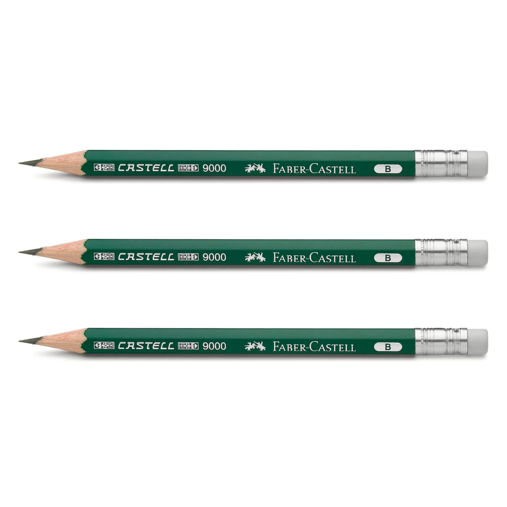 Der berühmteste Bleistift überhaupt ist hierzulande der „Grüne“, amtlich Castell 9000 genannt, der im Jahr 2005 einhundert Jahre alt geworden ist. Hier kommt er in einer Sonderausführung als Kurzbleistift für Hemdentasche und Stiftschlaufe, mit einem aufsteckbaren Verlängerer, der gleichzeitig als Minenschoner fungiert und darüber hinaus noch einen Anspitzer birgt.
