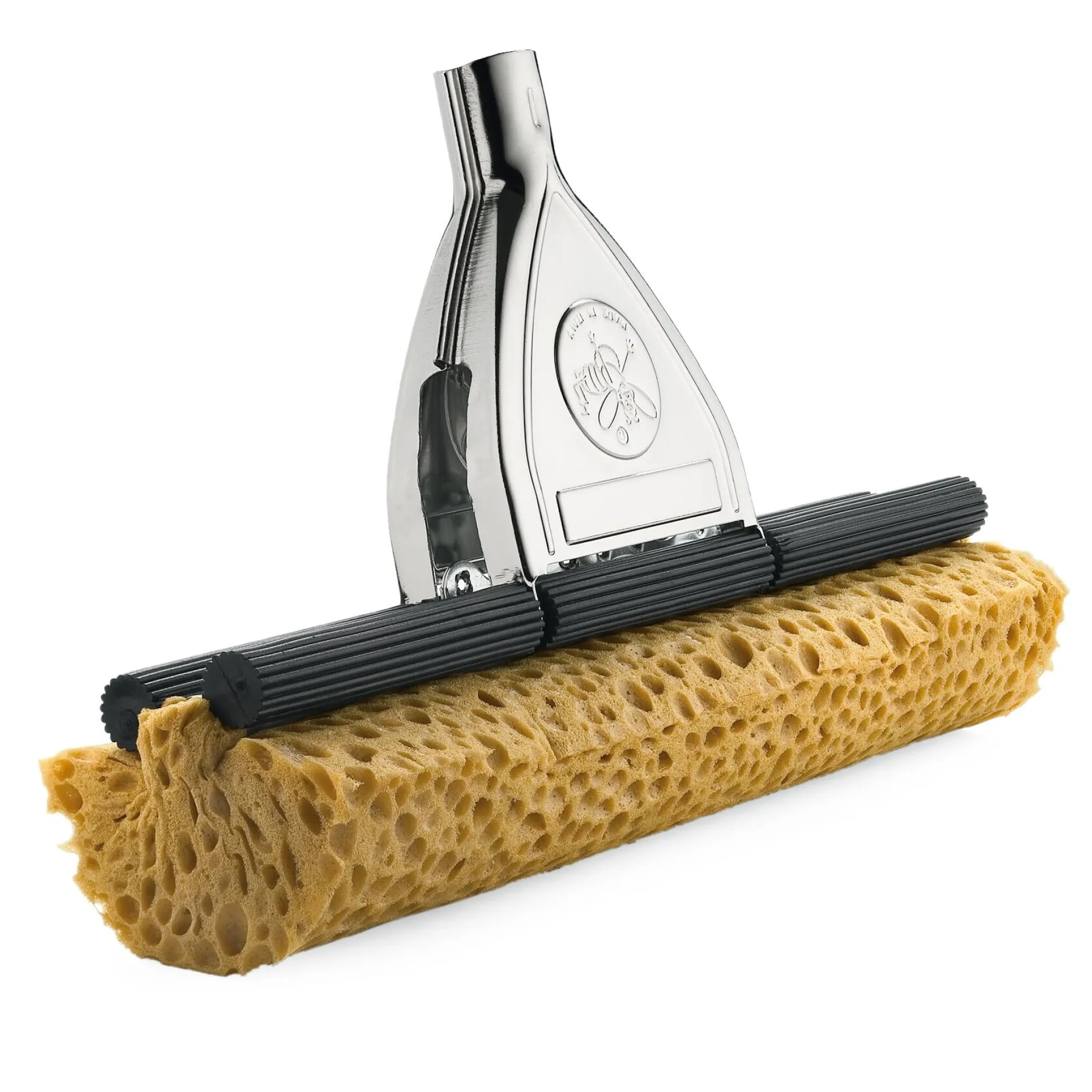 Ein Ersatzschwamm für unseren italienischen Wischer. Bei diesem Modell sorgt ein einfacher Hebelzug dafür, dass der Schwamm mit starken Kunststoffrollen ausgewrungen wird – und die Hände beim Wischen trocken bleiben. Mit dem 32 cm breiten Schwamm tut er seine Arbeit sehr effektiv.