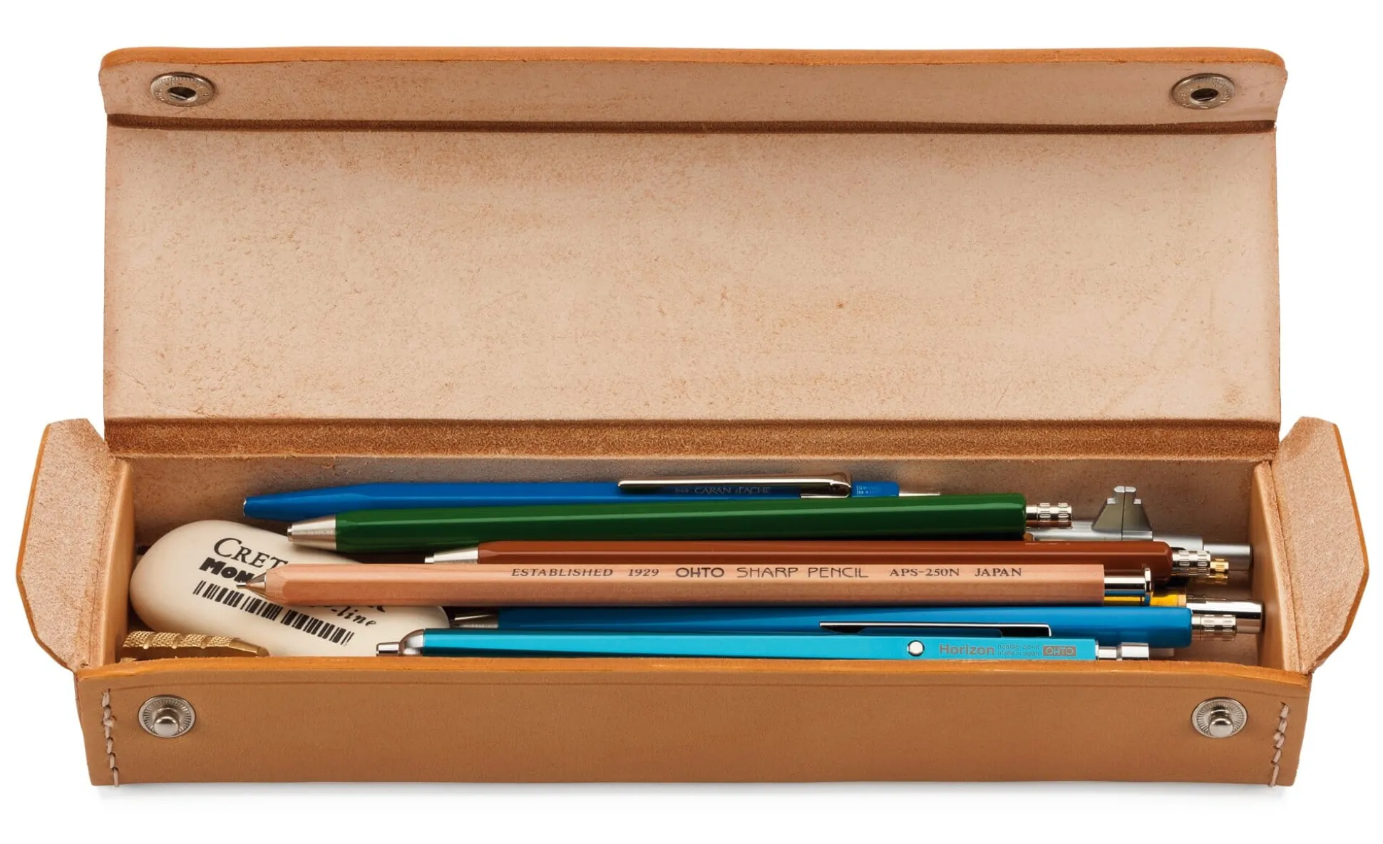 Ein kompaktes, formstabiles – und auch haptisch ausgesprochen angenehmes – Etui aus kräftigem Rindleder mit einer Stärke von 2 mm. Auf Reisen oder zu Hause ist es ein sicherer Aufbewahrungsort für empfindlichere Dinge wie Schmuck, Rasierutensilien, Kosmetikpinsel oder Kämme. Es eignet sich gleichermaßen für die kleine Reiseapotheke, Pipetten oder Pinzetten und hält, auch wenn es nicht unterwegs ist, Nähzeug, Stricknadeln oder Schreibgeräte und Pinsel vor. Das schlichte Etui ist in bester Sattlermanier mit Kantennaht gefertigt. Damit es dauerhaft seine Form und Stabilität behält, wird das ausgestanzte Leder nass in die endgültige Form gebracht, in der es dann von Hartholzklötzen gehalten wird, bis es getrocknet ist. Das Leder ist anfangs recht hell, dunkelt jedoch schnell nach und entwickelt im Laufe der Zeit die für Leder typische Patina. Am Etuirücken ist es mit der Manufactum Prägung versehen.