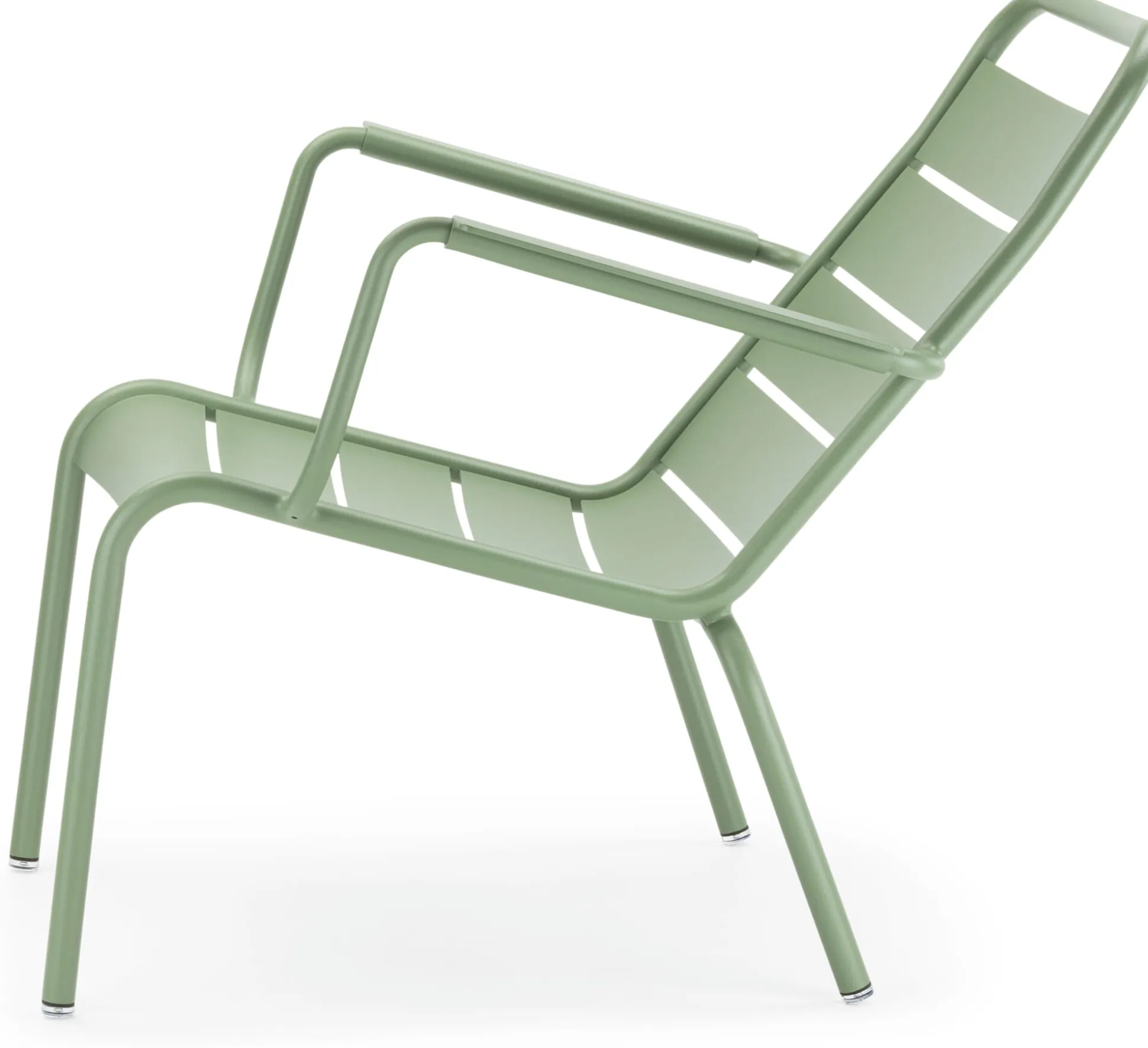 Einladend bequem: (fast) wie ein Liegestuhl. Stapelbar (max. 6 Stühle). Rahmen aus Aluminiumrohr, Sitzfläche, Rücken- und Armlehne aus Aluminiumlatten. Polyesterpulverbeschichtung. Möbelgleiter aus Kunststoff. Sitzhöhe 41 cm, Sitztiefe 40 cm. Höhe 72 cm, Breite 71 cm, Tiefe 87 cm. Gewicht 5,9 kg. Max. Belastung 130 kg. Hergestellt in Frankreich.