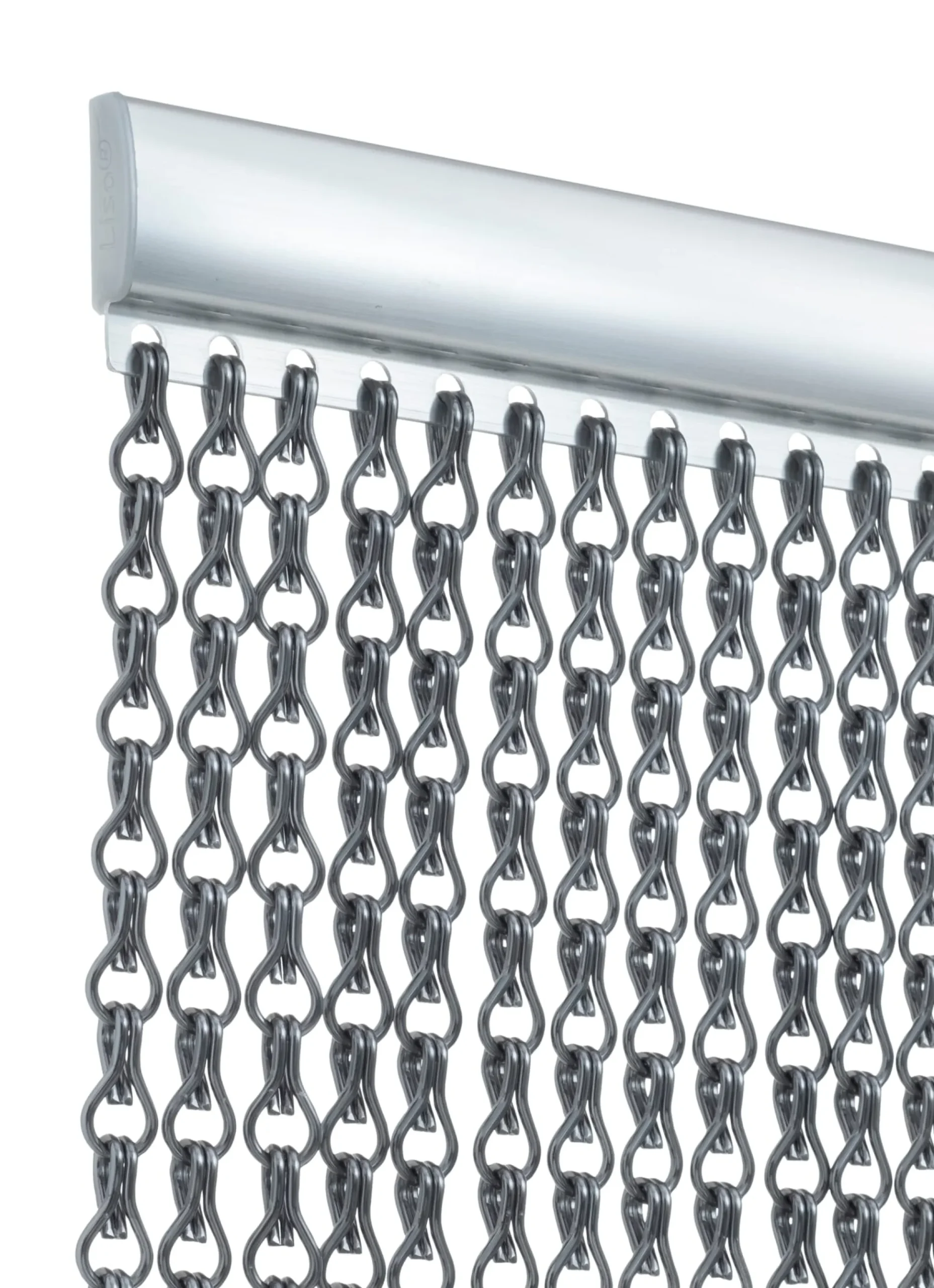 Dieser Fliegenvorhang schützt vor Insektenzuflug, vor Staub und Schmutz, ohne bei geöffneter Balkon- oder Terrassentür die Luftzirkulation wesentlich zu beeinträchtigen. Innerhalb der Wohnung können Sie ihn, wenn Sie möchten, auch anstelle einer Tür nutzen. Die Kettenglieder bestehen aus Aluminium und werden beim Hersteller in den Niederlanden in einem aufwendigen Verfahren eloxiert. Dadurch behalten sie über Jahre hinaus ihren Glanz, sind UV-stabil, witterungs- sowie korrosionsbeständig und bei Bedarf sogar abwaschbar.
