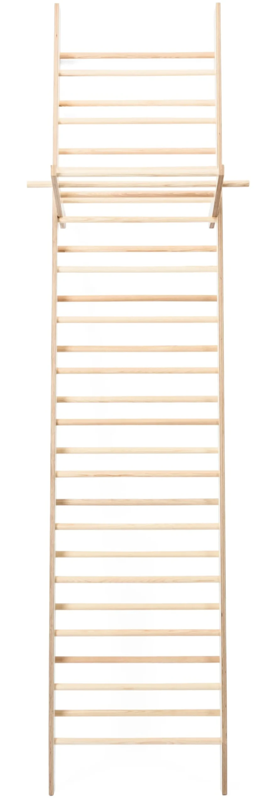 Material: Birke Multiplex (Herkunft: Osteuropa) 15 mm, beidseitig weiß melaminharzbeschichtet, Stäbe: Eschenholz (Herkunft: Osteuropa)