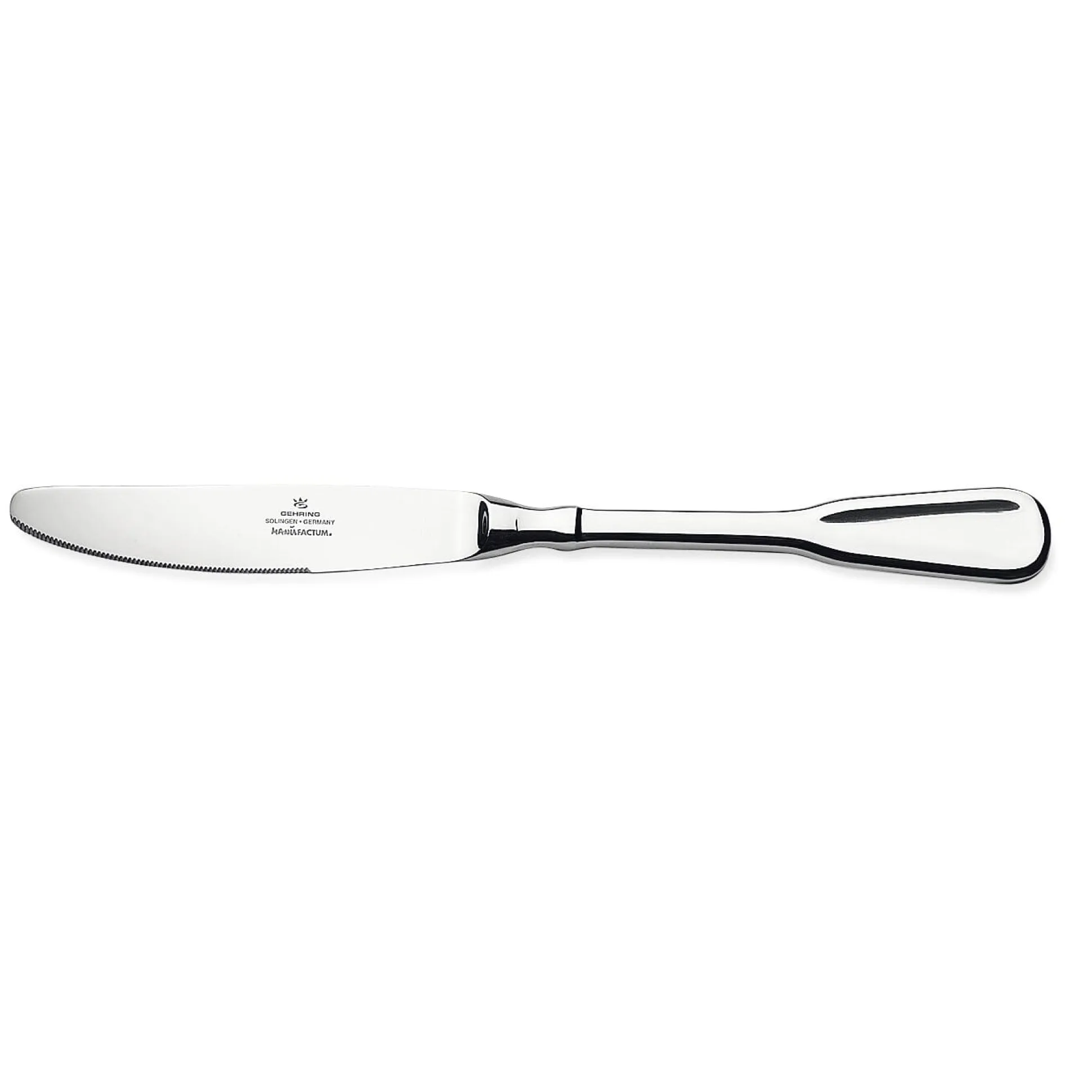 Bei Gehring in Solingen übernimmt man vom Schmieden bis zum Reiden und Polieren noch alle Arbeitsschritte selbst. Die Messerklingen sind aus 1.4021-Vergütungsstahl, der aufgrund des relativ hohen Kohlenstoffanteils gleichzeitig sehr hoch schärfbar und bei feinstem Anschliff völlig korrosionsbeständig ist; schon im Grundschliff sind die Messer sehr viel schärfer als bei Bestecken üblich.