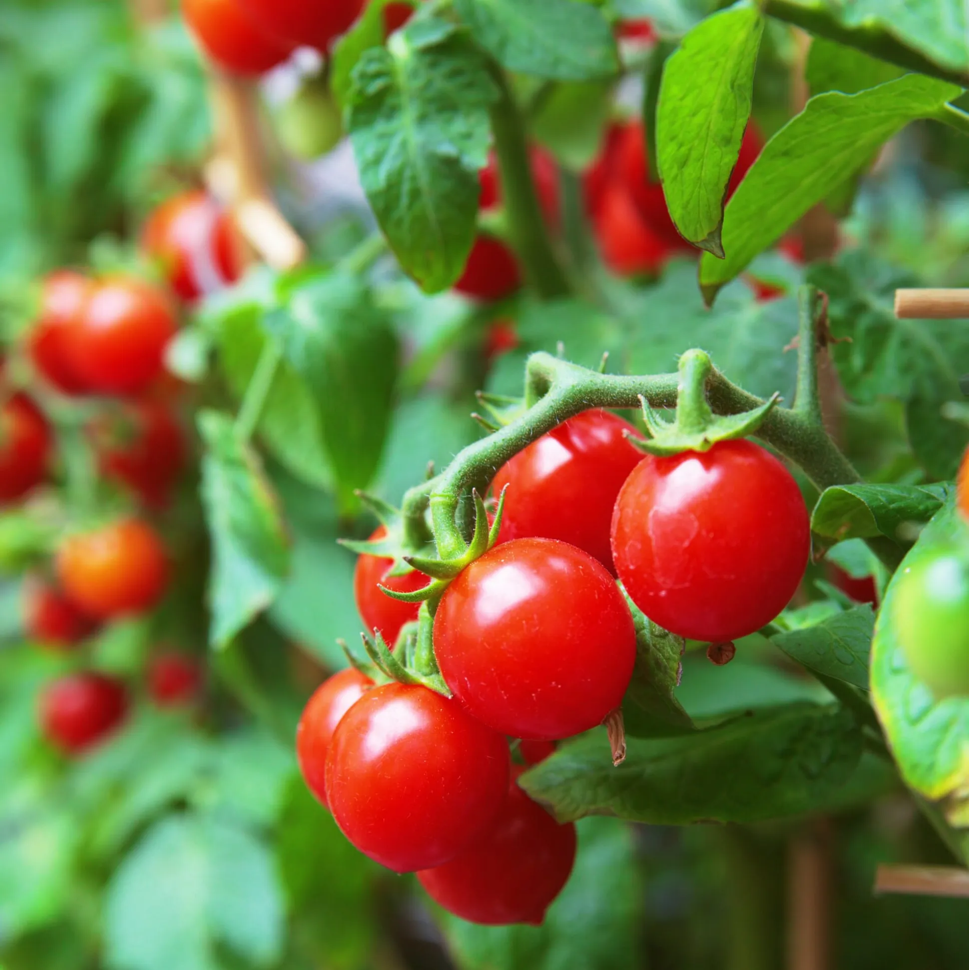 Kompakt wachsende Buschtomate mit runden, roten, gut platzfesten Früchten. Ideale Sorte für Töpfe und Balkonkästen, anspruchslos und sehr ertragreich.