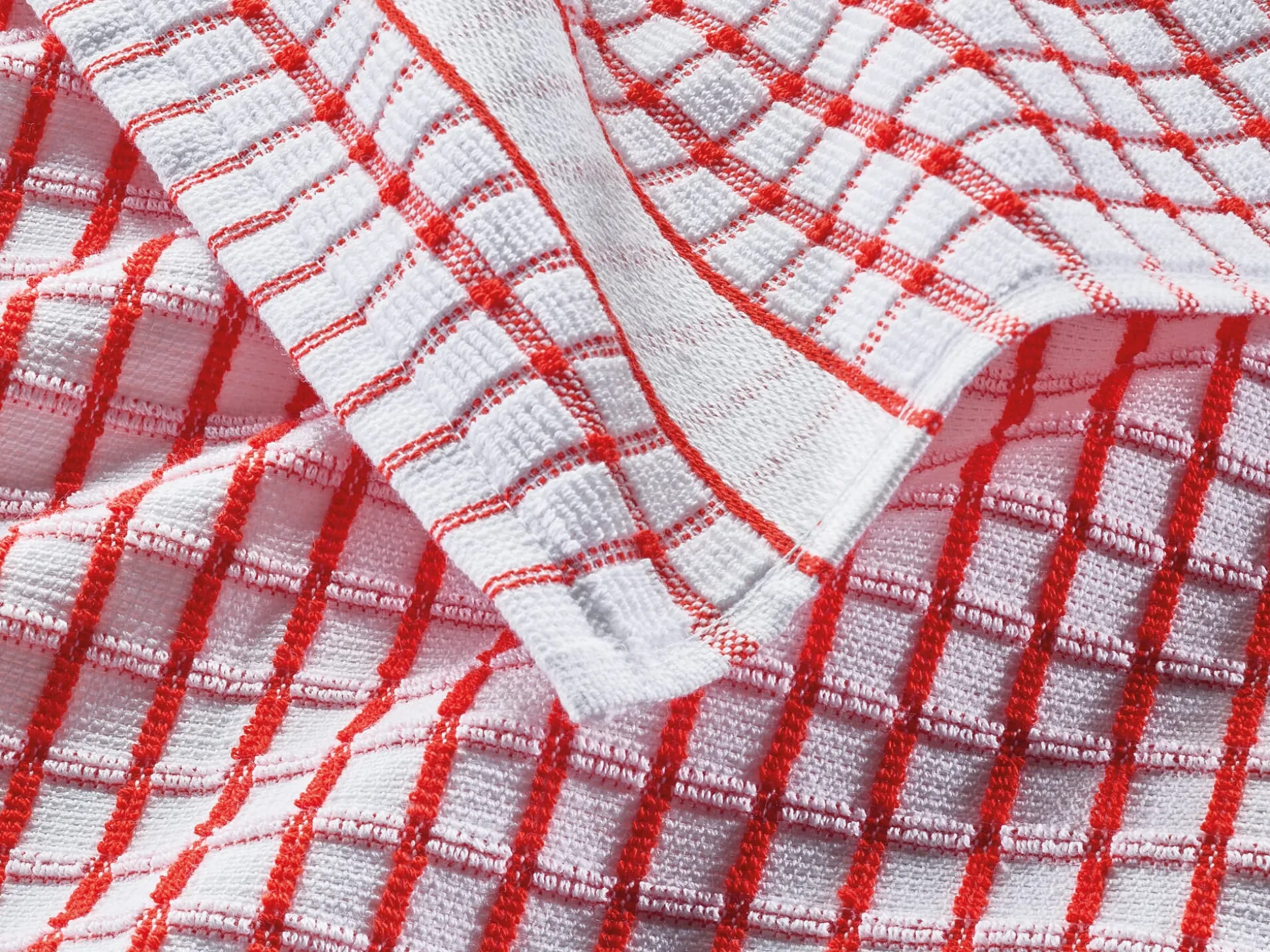 Ein Geschirrtuch aus Frottier scheint zunächst ungewöhnlich. Denn obwohl man im Bad die hohe Saugkraft von Frottiertüchern, die sie aufgrund der Schlingen haben, lobt, sucht man sie in der Küche meist vergebens – obwohl die Anforderung jeweils dieselbe ist. Allenfalls ein Frottiertuch für die Hände hängt dort am Haken, das für Geschirr jedoch meist viel zu dick ist. Ein ganz feines, saugfähiges Frottiertuch, das genau die richtige Stärke hat, um damit (auch etwas mehr Geschirr) zu trocknen, stellte uns die Weberei Herka im Waldviertel vor. Wir haben das lang gesuchte Tuch mit Begeisterung in unser Sortiment aufgenommen und können es Ihnen nun in drei Farben anbieten. Für Ihre Gläser empfehlen wir Ihnen dennoch weiterhin ein reinleinenes Gläsertuch.