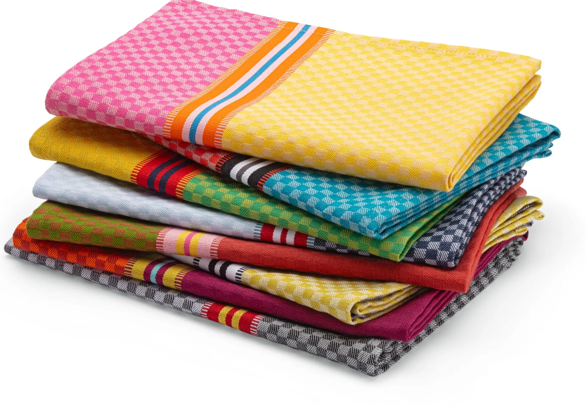 Geschirrhandtücher in traditioneller Webart und bester Qualität aus einer 100 Jahre alten Weberei im Südwesten Frankreichs. Die dort produzierten Gewebe werden nach ihren historischen Vorbildern gefertigt, ihre Farben werden jedoch zeitgenössisch gewählt und faszinieren in schönen Kombinationen.