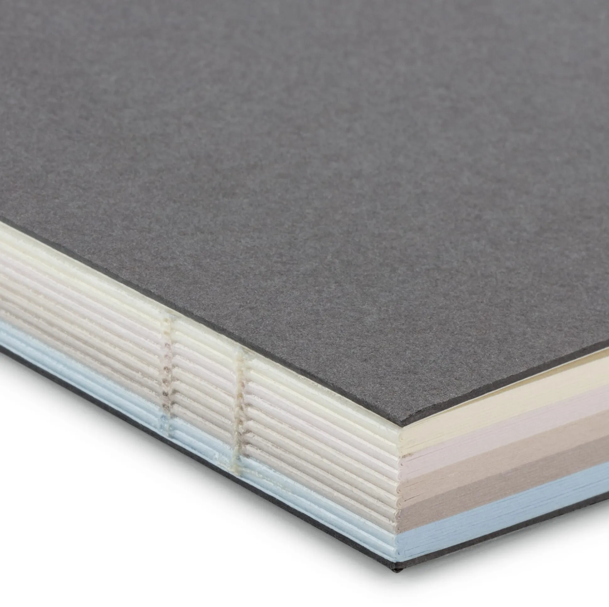 Ein weiterer praktischer Nutzen: Dank der (ansehnlichen) offenen Bindung mit Fadenheftung lässt sich das Registerbuch weit und flach aufschlagen, sodass Sie auf jeder Seite komfortabel ohne schreibstörende Buchrückenkante in der Mitte schreiben können. Zwei Umschlagdeckel aus grauem, kräftigem Naturkarton (600 g/qm) fassen die 80 Seiten matten Naturpapiers ein, diese sind über den Registerschnitt und zusätzlich über fünf dezente Farben in fünf Blockabschnitte separiert.