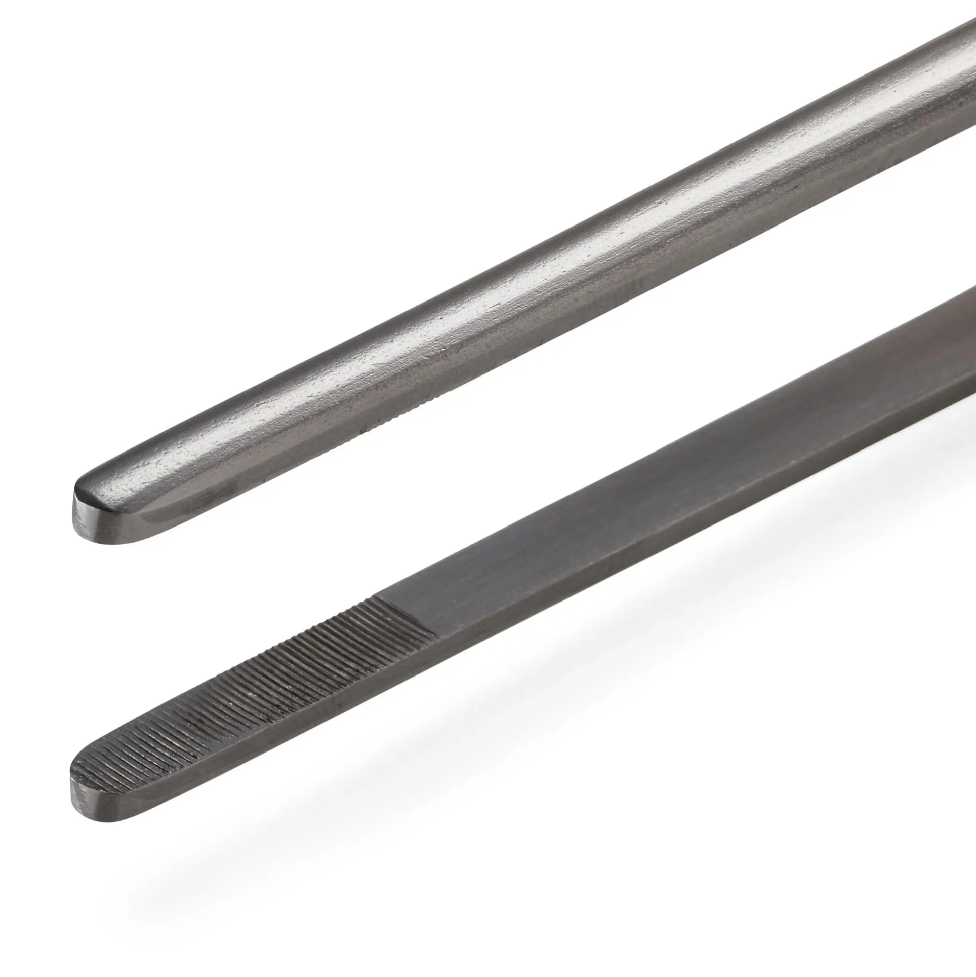 Edelstahl 18/10 (rostfrei), für die Spülmaschine geeignet. Die Pinzette mit gerundeter, innen geriffelter Spitze und geriffelten Griffflächen öffnet sich bis 3,5 cm. Gefertigt in Deutschland.