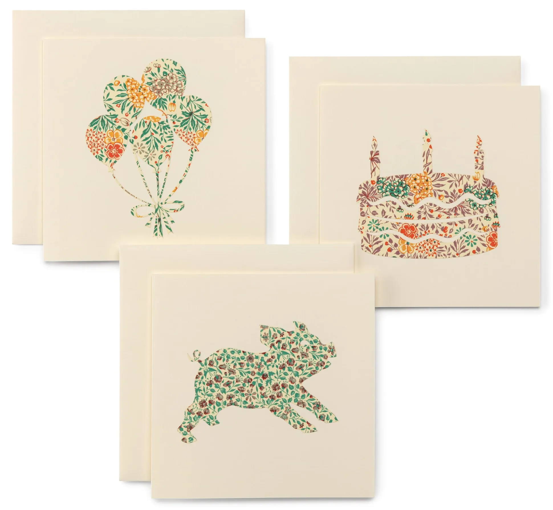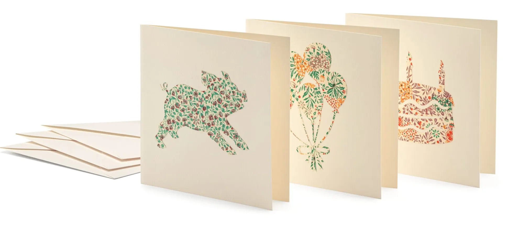 Diese Grußkarten mit aufgeklebten Scherenschnitten verschiedener Dekorpapiere (unter anderem aus Italien) bieten wir im Set mit jeweils drei Motiven an. Sie haben die Wahl zwischen Geburtstagskarten und Karten mit winterlichen Motiven. Die passenden Kuverts liegen den Klappkarten aus chamoisfarbenem 200-g-Papier bei.