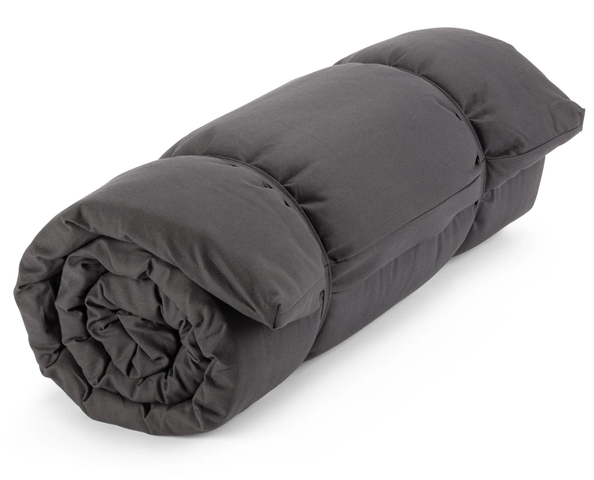 Diese Yoga- und Gymnastikmatte gibt auch ein passables Notbett ab. Ihre Füllung besteht aus einem 4 cm hohen Nadelvlies. Beim Vernadeln wird das Vlies noch mechanisch verfestigt und dadurch sehr dicht, reißfest und dennoch biegsam. Und da es außerdem punktversteppt ist, behält es auch langfristig seine Form. Der Außenbezug ist als kräftiges, strapazierbares Halbpanama-Gewebe gefertigt und bis 40 °C waschbar. Die Baumwolle für Bezug, Füllung und Inlett stammt aus kontrolliert biologischem Anbau.