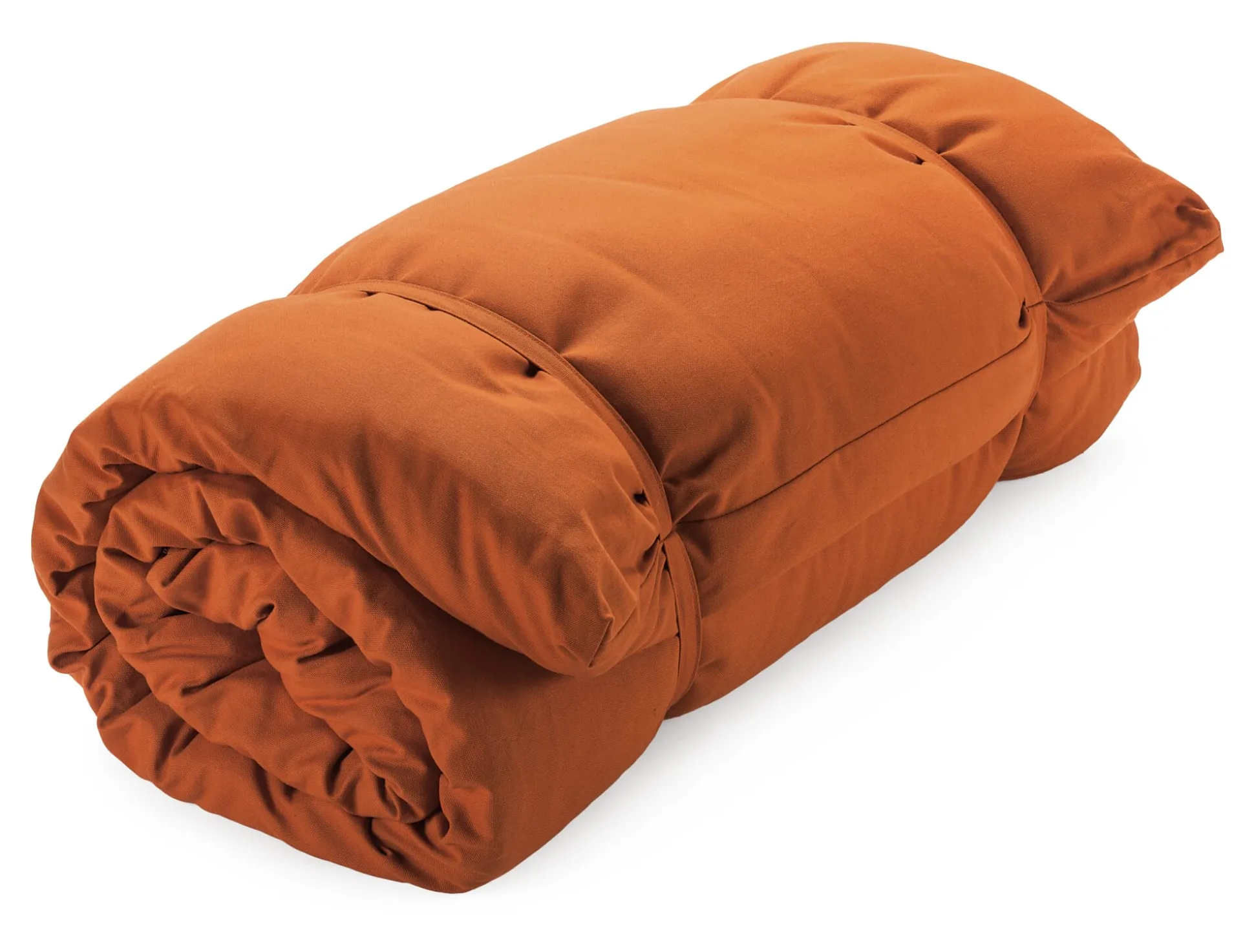 Diese Yoga- und Gymnastikmatte gibt auch ein passables Notbett ab. Ihre Füllung besteht aus einem 4 cm hohen Nadelvlies. Beim Vernadeln wird das Vlies noch mechanisch verfestigt und dadurch sehr dicht, reißfest und dennoch biegsam. Und da es außerdem punktversteppt ist, behält es auch langfristig seine Form. Der Außenbezug ist als kräftiges, strapazierbares Halbpanama-Gewebe gefertigt und bis 40 °C waschbar. Die Baumwolle für Bezug, Füllung und Inlett stammt aus kontrolliert biologischem Anbau.