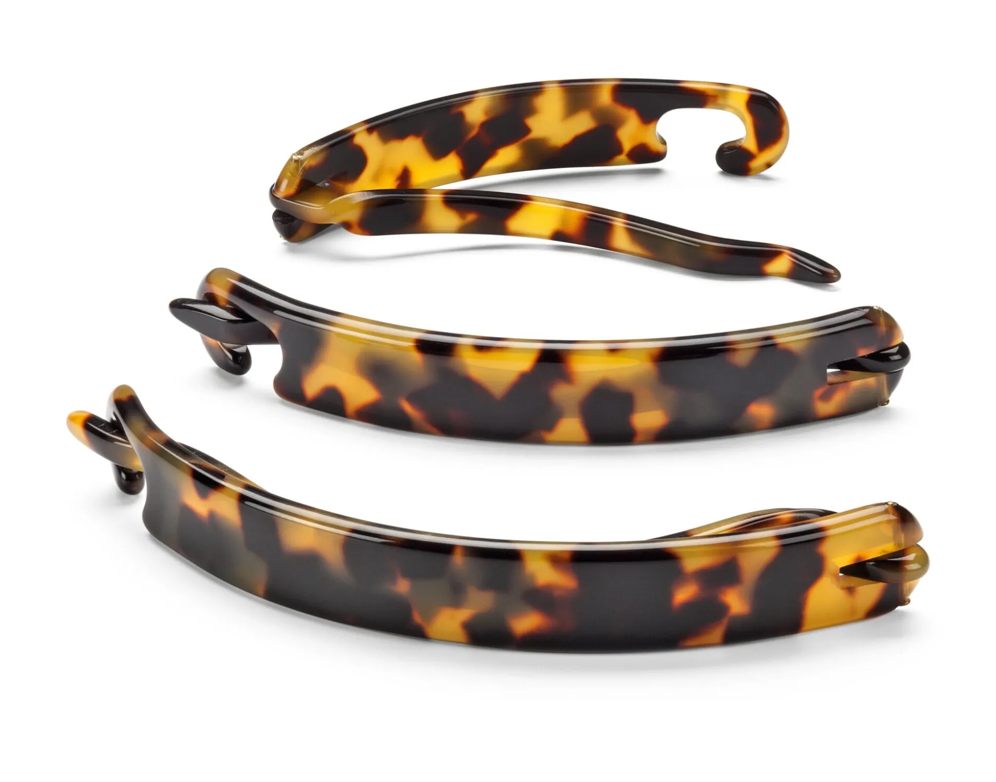 Die Haarspangen sind aus dem bei uns ob seiner materialtechnischen und optischen Eigenschaften sehr beliebten Zelluloseazetat gefertigt. Das hier verwendete Rohmaterial in Schildpattoptik stammt aus Italien und ist das edelste, das erhältlich ist. Die Weiterverarbeitung erfolgt in Deutschland in Handarbeit. Alle Produkte sind sorgfältig poliert und entgratet.