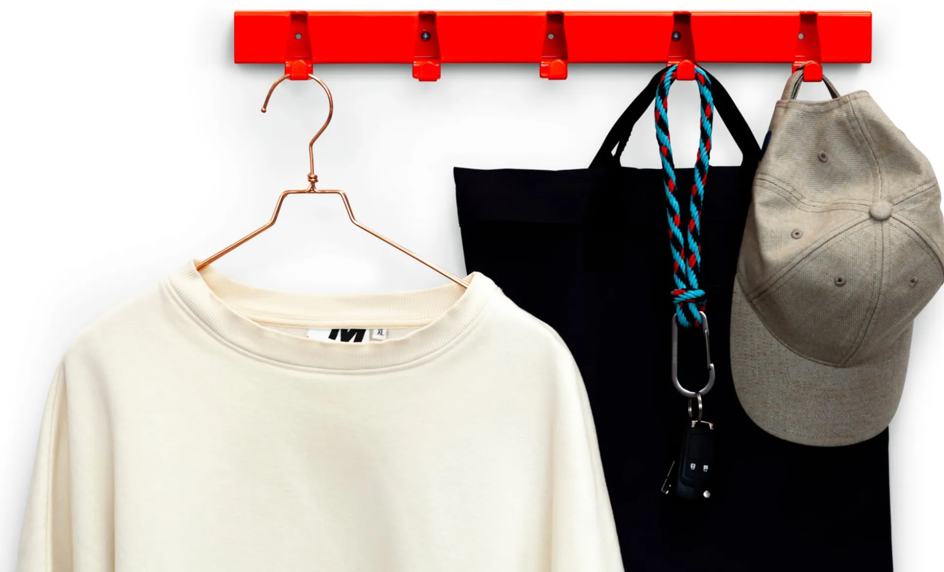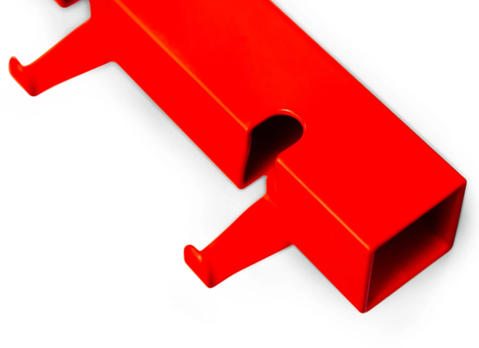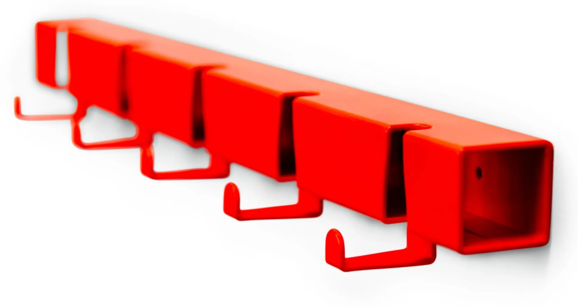 Maximale Materialausnutzung: Bei LAUFENDERMETER entsteht aus einem Vierkantrohr eine Garderobe – ganz ohne Verschnitt. Alle 10 cm wird ein Haken per Laserschnitt herausgearbeitet und nach außen gebogen. Die dabei entstehenden Öffnungen dienen auch der einfachen Wandmontage. Dazu ist LAUFENDERMETER ein modulares System, das sich umlaufend im Raum anordnen lässt: Bei uns In zwei Längen (100 cm, 50 cm) erhältlich, können diese beliebig zu denkbar einfachen und industriell anmutenden Garderobengeometrien kombiniert werden. Aber natürlich wirkt auch ein einzelnes Modul als Wandelement.