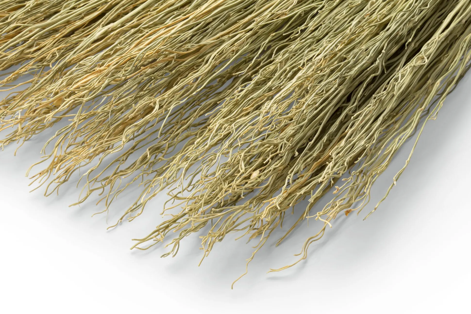 Besatz und Griff sind bei diesem Handbesen eins: Sie werden von Hand aus getrockneten Halmen der Sorghumhirse gebündelt, die aus offensichtlichem Grund auch „Besenkorn“ genannt wird. Feine Rispenstände der Sorghumhirse bilden die Besatzspitze, sodass eine größere (fegende) Oberfläche entsteht, die robust ist und doch so sanft ausfällt, dass Sie Ihre Möbel oder Böden nicht verschrammt. Die glatten, soliden Halmenden bilden hingegen den Griff, der mithilfe einer Wicklung aus festem Baumwollzwirn gesichert wird. Um dem Handbesen sowohl zu Form als auch zur Ästhetik zu verhelfen, wendet die estnische Herstellerin für die Wicklung ein traditionelles handwerkliches Verfahren ihrer Heimat an: Zum Besatzende hin stuft sie die Bindung ab und erzielt so die praktische, flache Form des Besens und das charakteristische geometrische Muster.