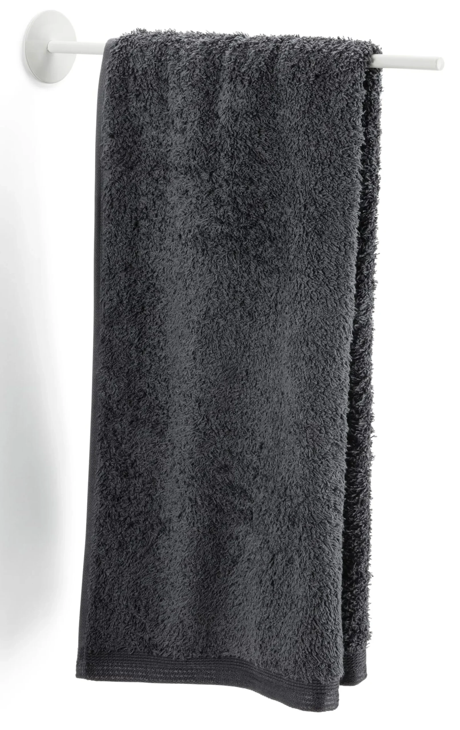 Der Handtuchhalter ist ein weiteres Mitglied der HOOK-Familie. Dieser Handtuchhalter ist minimalistisch und multifunktional im Bad oder in der Küche, für Handtücher oder Kochutensilien einzusetzen. Im Grunde nicht mehr als ein Metallstab. Richtig gut gemacht hält er bis zu 5 kg und wird mit einem ausreichend dimensionierten Dübel – im Lieferumfang enthalten – an der Wand befestigt.