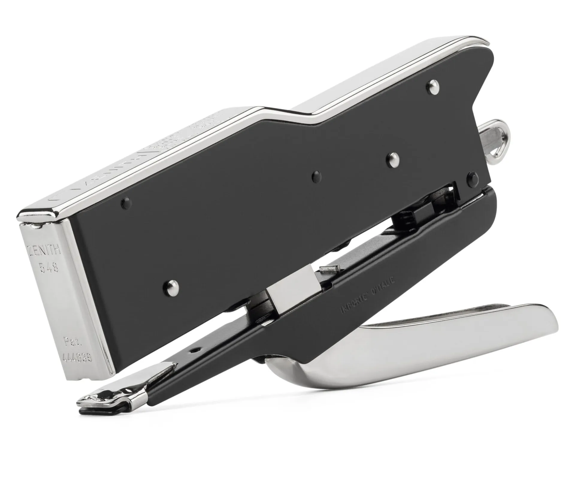 Seit 1926 produziert Balma, Capoduri & C. im lombardischen Städtchen Voghera Heftgeräte der Marke Zenith (und übrigens seit 1927 auch den legendären Papierkleber Coccoina). Die hier angebotene Heftzange für Klammern der Größen 6/4 und 6/6 und Stapelhöhen von 15 bzw. 30 Blatt Papier fertigt der Hersteller seit 1948 in technisch unveränderter Form.