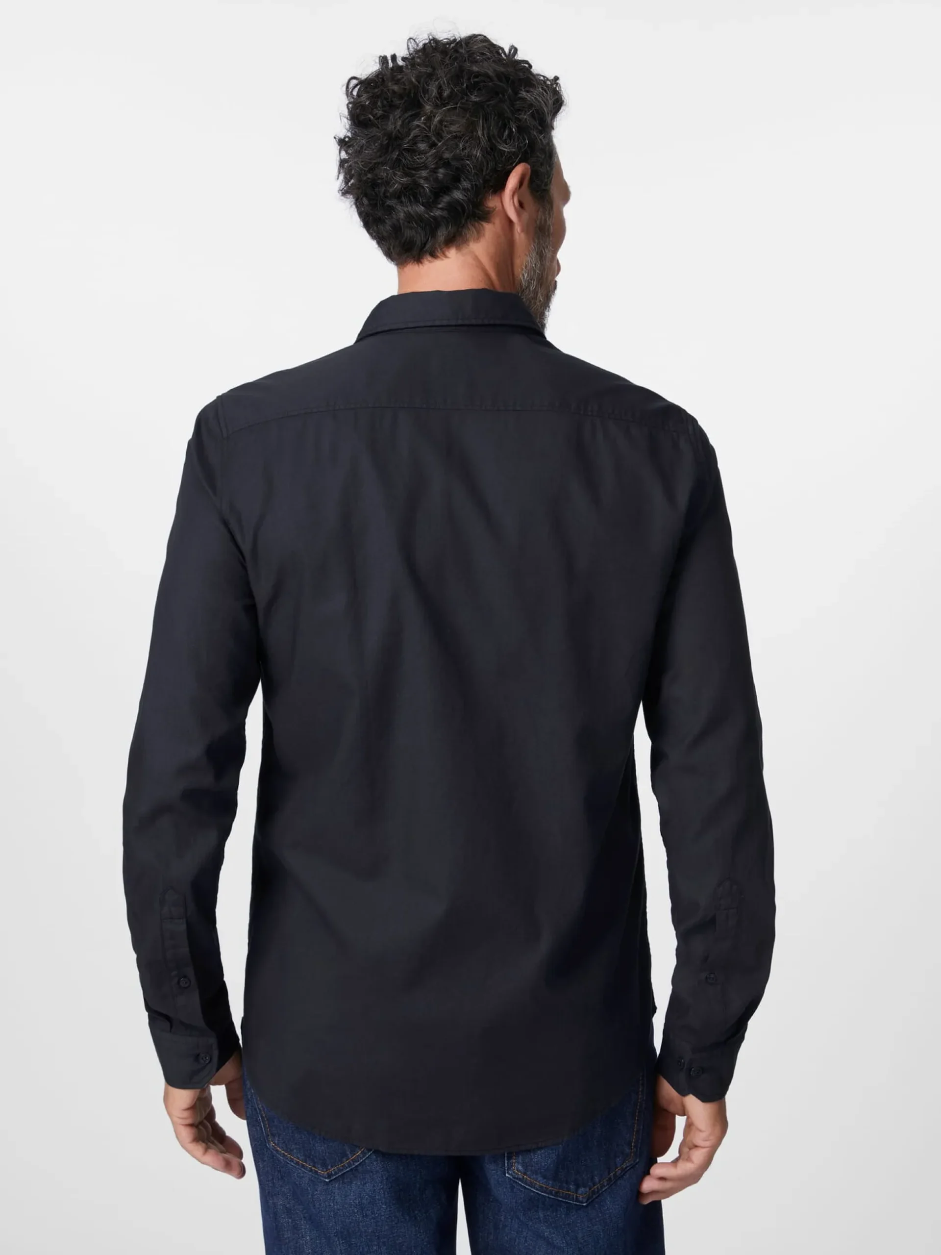 Der griffige Stoff dieses Hemds ist in Leinwandbindung gewebt, was ihm eine feine plastische Oberfläche gibt. Genauer gesagt ist es ein Piqué, dessen markante Struktur sowohl in sportlichen wie in eleganteren Kombinationen gut zur Geltung kommt. Der Schnitt des Hemdes ist geradlinig, mit Kentkragen, abgesetzter Knopfleiste und ohne Brusttasche. Der Rumpfsaum ist gerundet.
