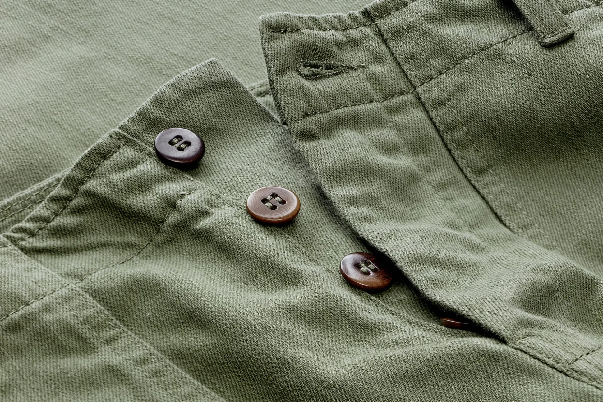 Diese aufgrund ihrer Robustheit und bequemen Passform beliebte Hose geht auf ein Modell zurück, das zwischen 1952 und 1963 zur regulären Felduniform der amerikanischen Streitkräfte zählte – sie dürfte mithin auch von Elvis Presley getragen worden sein. Pike Brothers hat bei der Neuauflage die Form, den Schnitt und das kräftige Fischgratgewebe unverändert gelassen. Lediglich die ursprünglichen Metallknöpfe wurden durch Steinnussknöpfe ersetzt. Die Hose hat je zwei aufgesetzte Taschen vorne und hinten, letztere sind knöpfbar. Die Weite lässt sich über einen geknöpften Taillenriegel im Bund moderat einstellen.