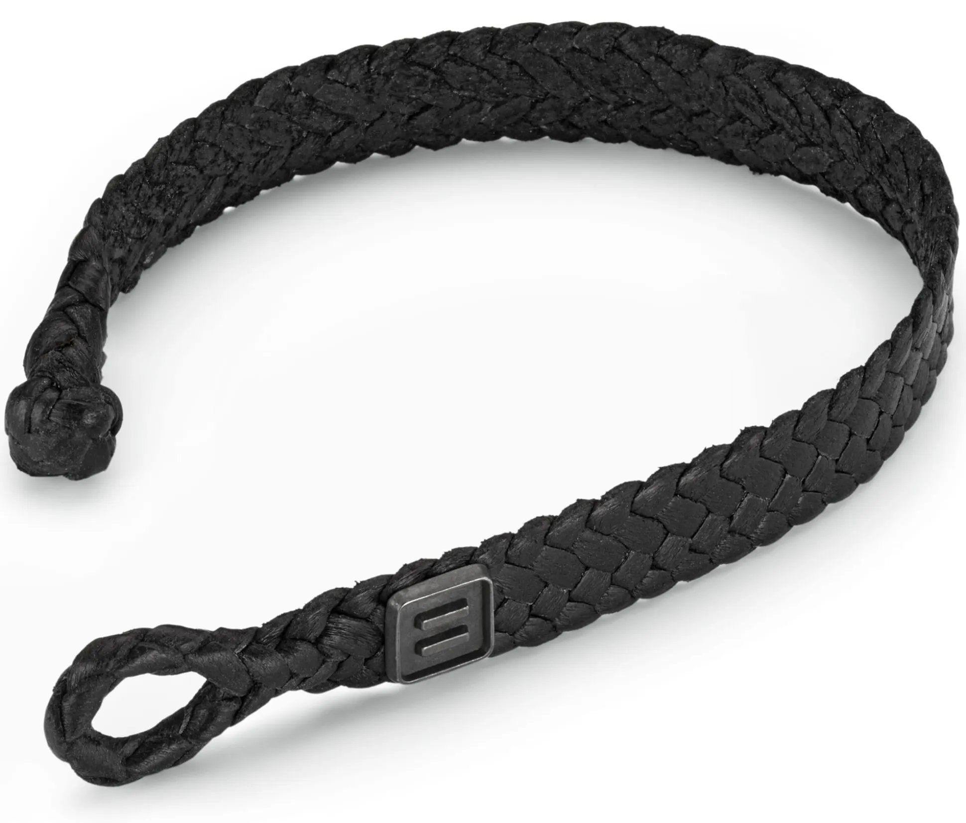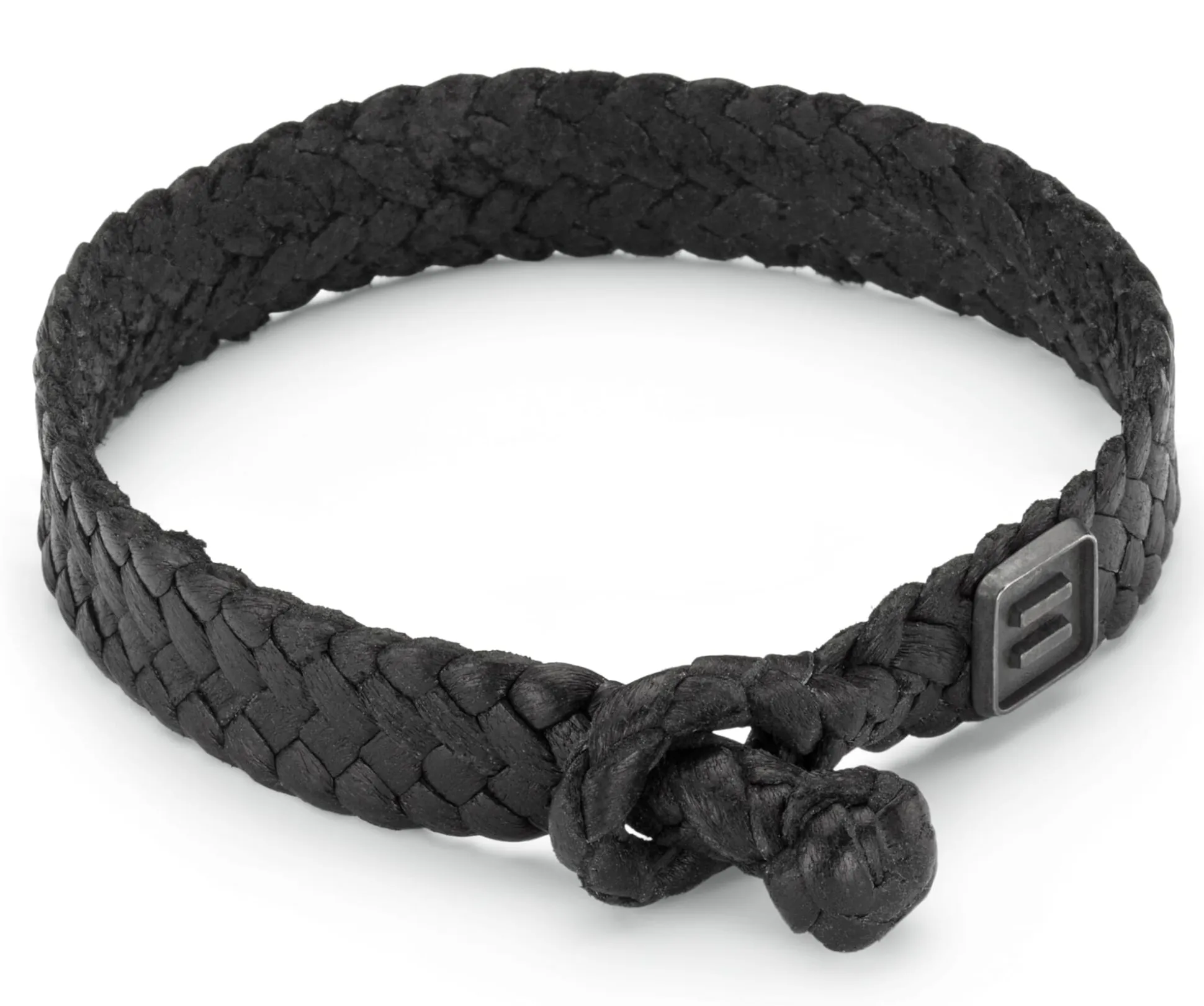 Dieses weiche Armband ist aus schmalen Schaflederstreifen geflochten. Es besteht vollständig aus diesem Material, denn der Verschluss mit Schlaufe und geflochtenem Knebelknopf ist ebenfalls aus Schafleder gearbeitet.