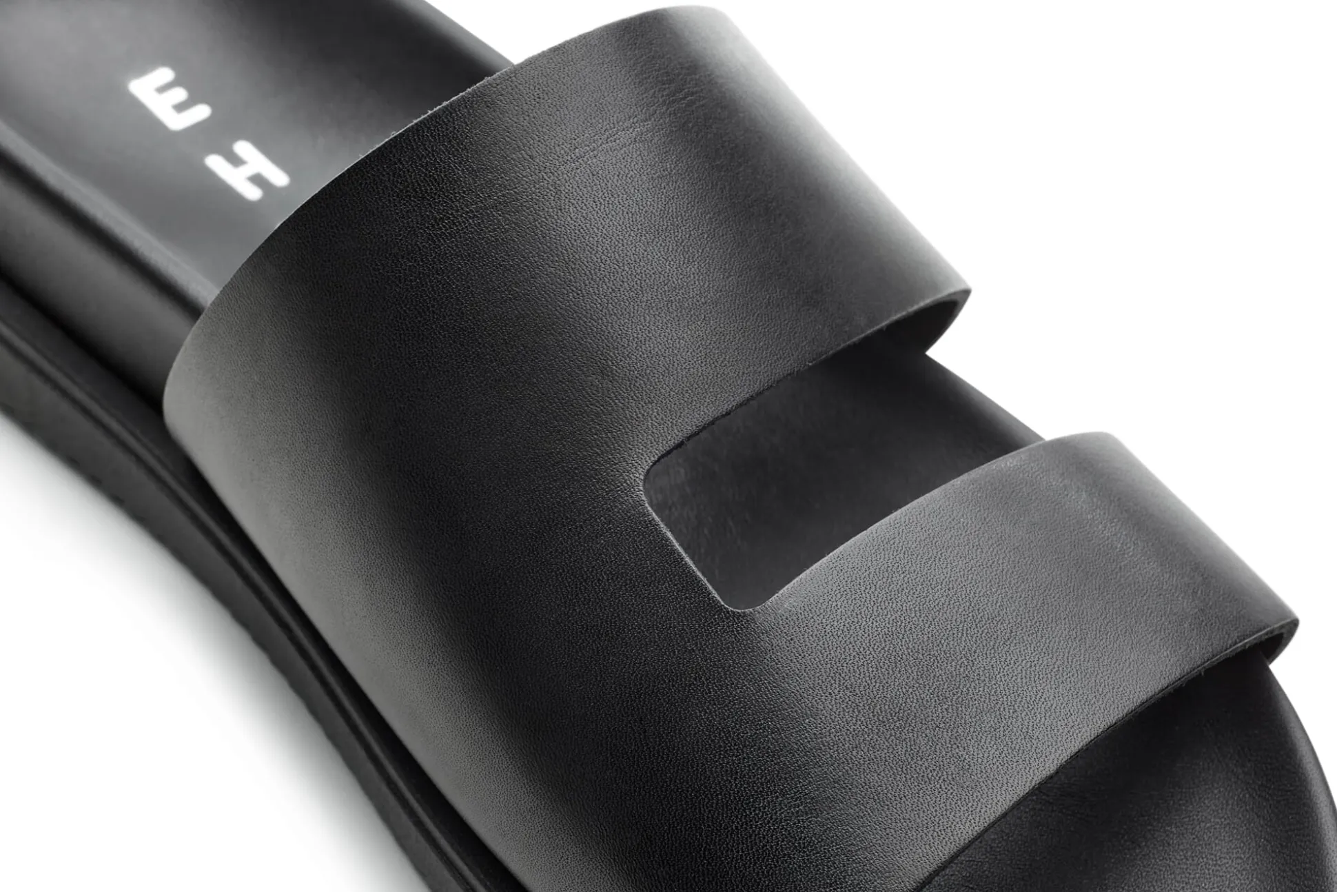 Diese Lederpantolette kommt mit einer modernen, minimalistischen Optik daher. Dabei folgt die Form ganz der Funktion. So geben die breiten Riemen guten Halt und die anatomisch geformte Decksohle passt sich angenehm dem Fuß an und sorgt für ein gutes Tragegefühl. Die geriffelte Gummisohle schließlich gibt guten Grip. Damit ist die Pantolette ein guter Begleiter für jeden Tag.