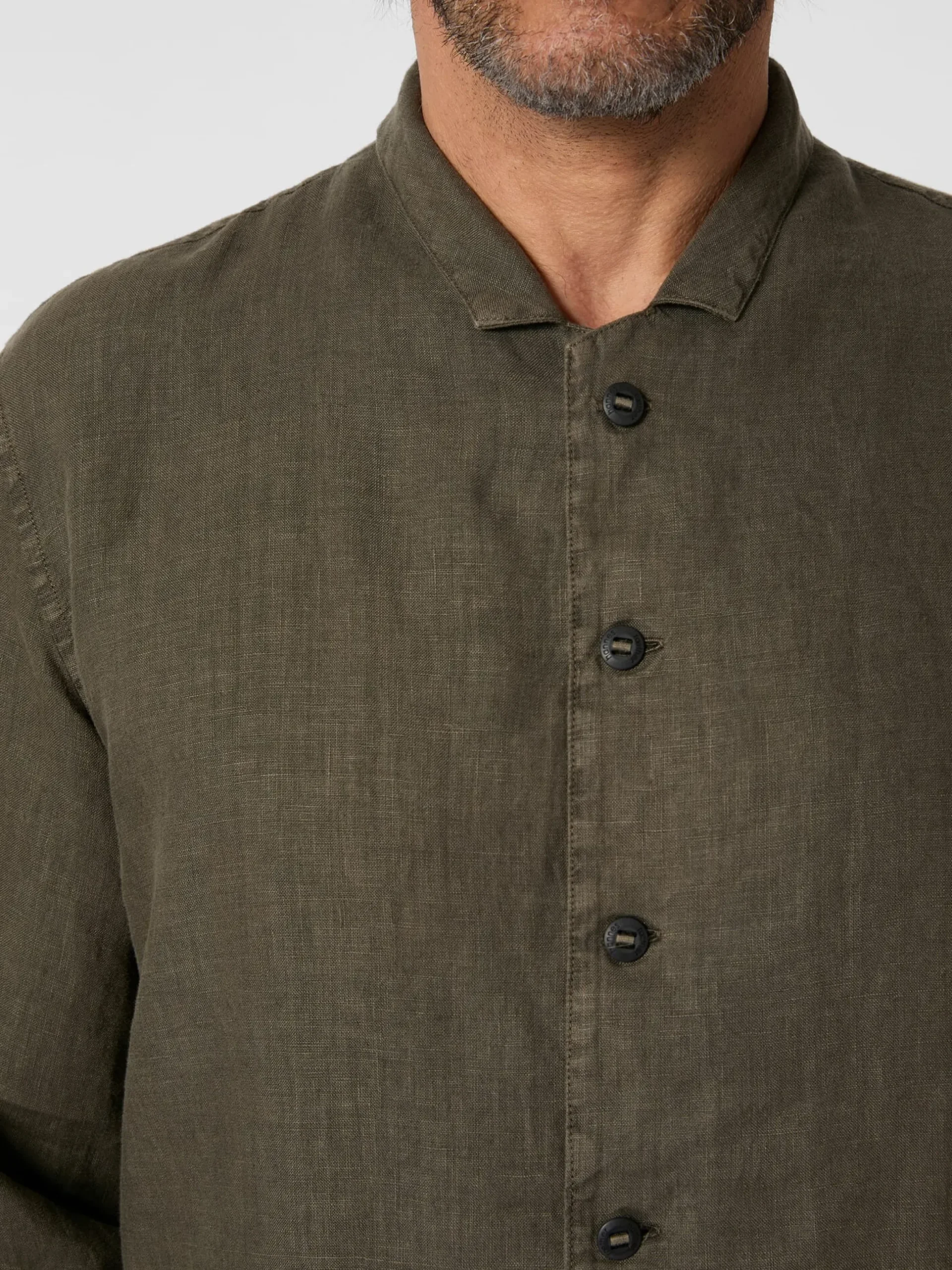 100% Leinen. Kunststoffknöpfe. Hergestellt in Tschechien. Rückenlänge bei Größe L = 77 cm.