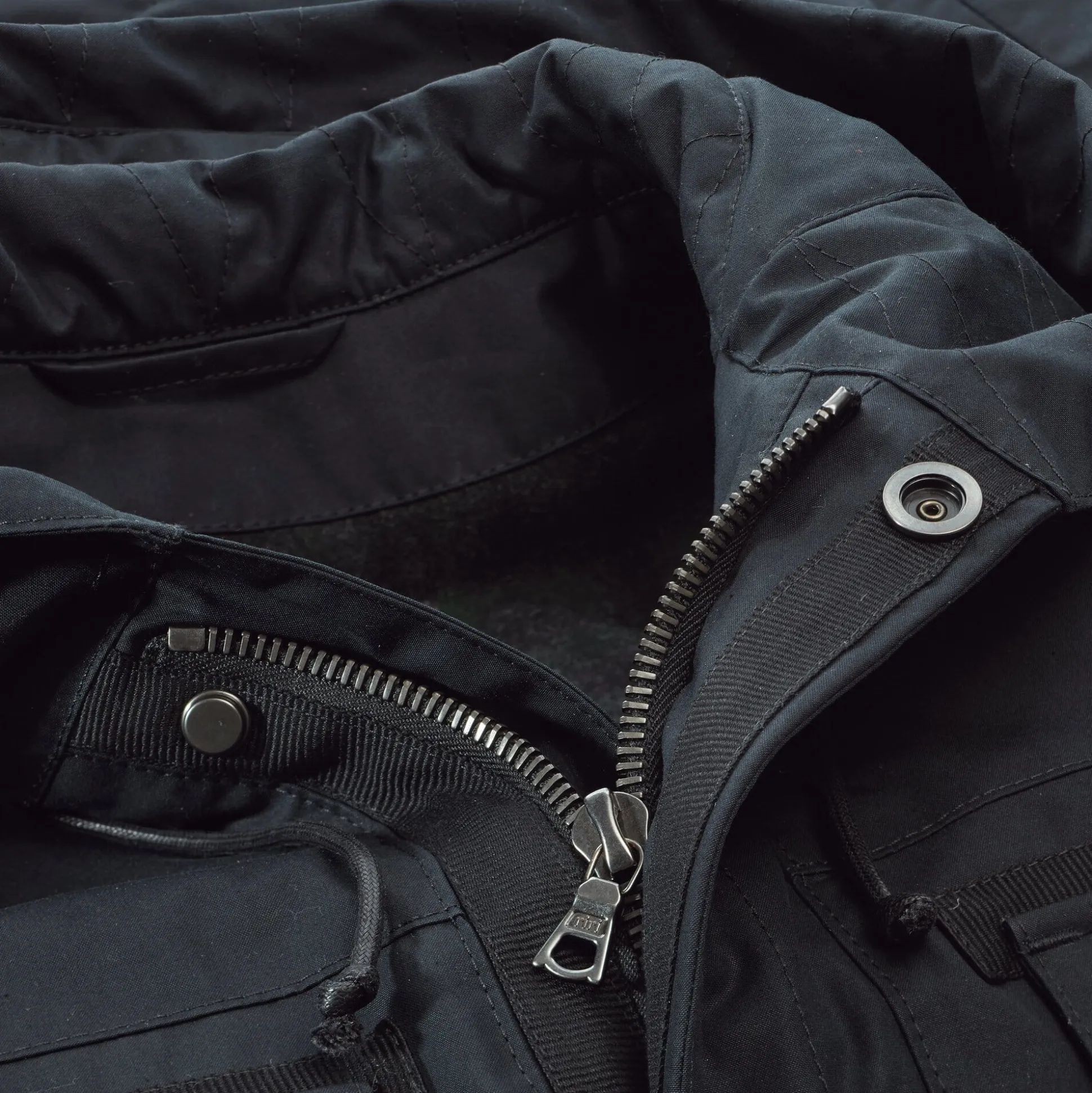 EtaProof® ist ein atmungsaktives Baumwolltuch der Zürcher Weberei Stotz, das nach dem Schutzprinzip der Schirmseide trocken hält, wenn der Regen nicht gerade in Sturzbächen vom Himmel kommt. Der moderat auf Wachsbasis imprägnierte Stoff ist so dicht gewebt, dass die Fasern bei Kontakt mit Feuchtigkeit aufquellen und Wassertropfen an der Oberfläche abperlen. Als Naturfaser kann und will EtaProof® mit synthetischen Geweben natürlich nicht konkurrieren. Bei intensivem Gebrauch kann daher die helle Naturfarbe der Baumwolle hervortreten – dies ist von vielen Kund*innen sogar gewünscht, ähnlich wie der Used Look, der sich bei Jeans mit der Zeit einstellt.