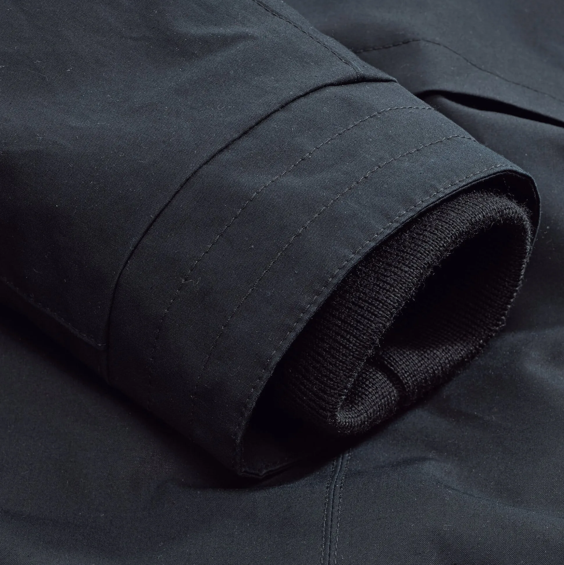 Unter dem Obermaterial aus EtaProof® liegt bei dieser Parkajacke ein wärmendes Wollvlies. Das Rumpffutter besteht aus einem Wollgewebe, das Ärmelfutter zwecks leichteren An- und Ausziehens aus Viskose. Strickbündchen an den Ärmeln halten den Wind ab. Vorn wird die Parkajacke mittels Zweiwege-Metallreißverschluss und Metalldruckknöpfen geschlossen – zur besseren Haltbarkeit ist die Knopfblende mit Ripsband verstärkt. Die Kapuze ist mit angeknöpftem Schirm gearbeitet. Die verwendete Baumwolle stammt aus kontrolliert biologischem Anbau.