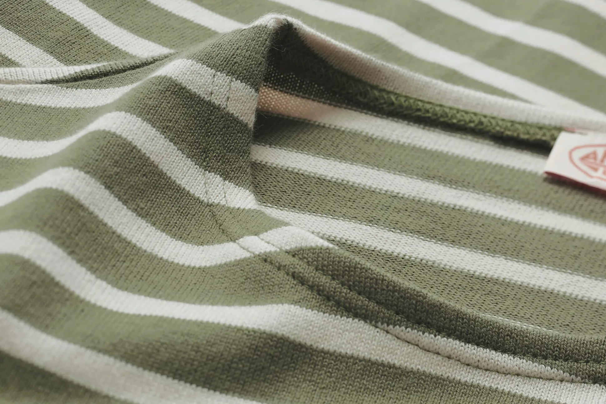 „Armor“ ist in der bretonischen Sprache das Wort für Meer, und mit „lux“ kann ja doch nur das Licht an der Küste gemeint sein. Maritimen Charakter haben jedenfalls bis heute viele der Kleidungsstücke, die Armor lux fertigt – Pullover und Shirts, Kleider, Hosen, Hüte, Mützen und Schals. Der Ende der 1930er Jahre von einem Schweizer in Quimper gegründete Betrieb kombiniert dabei schlichte, bequeme Schnitte, klassische Farben und eine kompromisslose Qualität in Sachen Material und Verarbeitung. Die Produktion erfolgt weitgehend am Stammsitz in Frankreich. Für uns verarbeitet Armor lux kbA-zertifizierte Baumwolle.