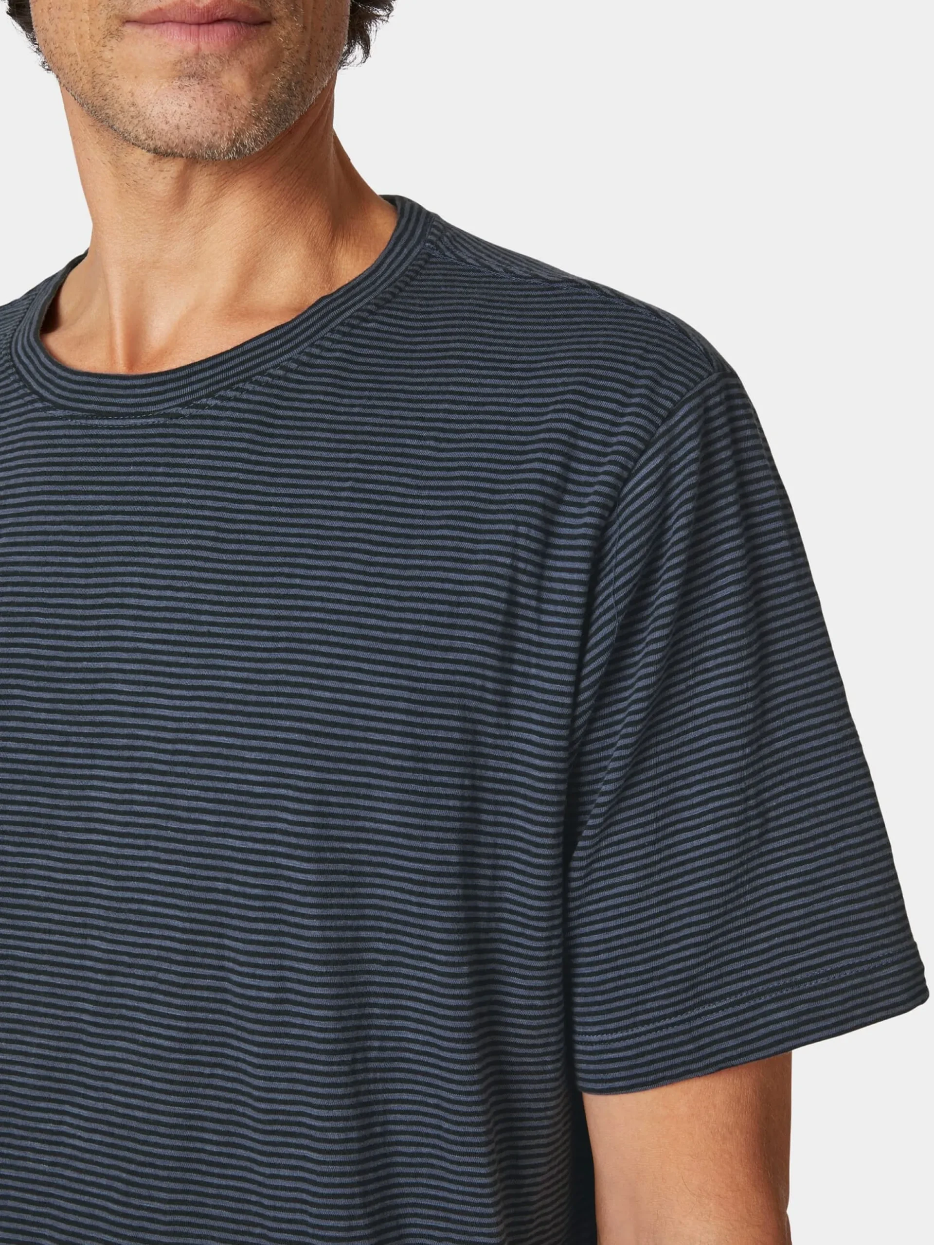 Fein geringeltes T-Shirt aus weichem Single-Jersey, das eine gute Ergänzung der sommerlichen Garderobe darstellt. Die verwendete Baumwolle stammt aus kontrolliert biologischem Anbau.